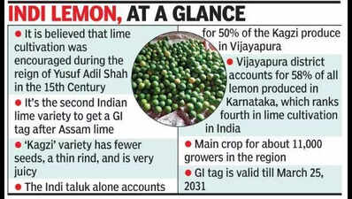Vijayapura: Indi lemon, with a Geographical Indication (GI) tag and which was introduced in Dubai earlier, has now been sent to Australia to gauge consumer response Down Under. Soon, more countries may start importing this juicy variety from Karnataka.The Lime Development Board, headquartered in Indi, is also planning Indi Lemon tea points across India to boost grower incomes. H S Patil, the managing director of Karnataka State Lemon Development Board (KSLDB), Indi, Vijayapura, told TOI the first-ever shipment of three tonnes of GI-tagged Indi lemon from Vijayapura was exported to the UAE on Aug 24. “It was the debut foreign consignment of Indi lemon. Now we have sent a sample consignment to Australia and are waiting for response,” he said. Ashok Allapur, the former chairman of KSLDB, said Indi lemon, belonging to the ‘kagzi’ variety, is grown on 18,000-22,000 hectares of land in Indi, Sindagi, and other taluks of Vijayapura districts. “Compared to the quantity grown here, markets of Vijayapura, Hubballi, Goa, Mumbai, and other cities were not sufficient. Hence, farmers didn’t have a big enough market for their produce,” Allapur said. “The GI tag was accorded in June 2023 for eight years. This has enabled farmers to send their produce to about 25 countries, and for a good price,” he commented. “Seeds, coverlet, juice, and lemon powder are used in making detergent cakes and bathing soaps. They are also used in medicines. However, there is a need for a study to add value to the fruit. Vijayapura district is geographically suited for lemons, just like Kashmir is famous for apples,” he further said.Allapur added the coverlet of the ‘kagzi’ variety is like paper, is more juicy and fragrant. Indi MLA Yashavantharayagowda Patil, who reportedly lobbied the govt to set up KSLDB in Vijayapura, said he has instructed the officials concerned to set up Indi lemon tea points across the country. “This tea should become popular on the lines of Assam tea. We have already set a tea point at Mini Vidhana Soudha in Indi. The board will expand such tea points across the country in the coming years,” he added.