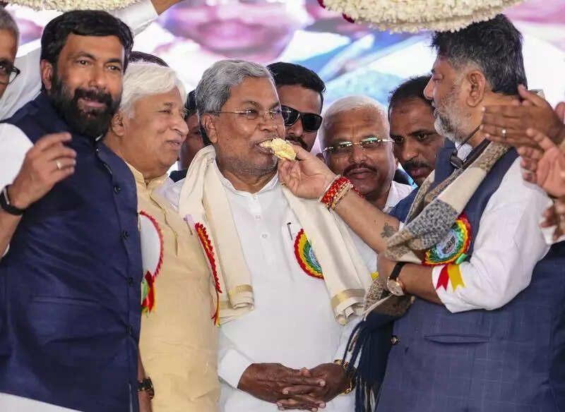 Bengaluru: Chief minister Siddaramaiah and his supporters threw a mega ‘nati koli badoota’ (country chicken feast) Tuesday, marking what they called a historic milestone, even though political experts insist the record-breaking day — when he will overtake Devaraj Urs as the longest serving CM — is still days away.The occasion was equal parts celebration and friendly chaos, proving that in politics, sometimes you party first and check the calendar later.Siddaramaiah, who has served a total of seven years and 236 days when combining his earlier term (May 13, 2013 – May 17, 2018, including days as a caretaker CM) with his current stint (May 20, 2023 – Jan 7, 2026), is poised to surpass Urs’ cumulative tenure of seven years and 239 days on Jan 11. Technically, the official record will be his then — but early festivities show that precision is not always a prerequisite for celebration.Interestingly, even the CMO seemed to be caught off-guard. Asked about the exact date, an official said, “Yes, we know technically the record is next week, but we went with the media frenzy which came up with Jan 7. Sometimes it’s okay to start the party a little early — especially when there’s humour, history, and cake involved.”Political analysts were not amused by the pre-emptive fanfare. “I thought politics was serious work, but apparently, it’s not. They aren’t even keeping the record straight — how will they analyse govt data?” remarked Vishwas Shetty.Political commentator MN Patil said the early celebrations are “unusual but not surprising,” given the pressure deputy chief minister DK Shivakumar is mounting on Siddaramaiah to eventually hand over the chair.In Haveri Wednesday, Siddaramaiah and Shivakumar shared the dais and cut a cake during the inauguration of the Haveri Institute of Medical Sciences, as Congress members marked Siddaramaiah’s milestone as the longest-serving chief minister of Karnataka.The celebration, organised by local Congress members, saw Shivakumar cut the cake and feed Siddaramaiah, a gesture that drew attention at the event and highlighted the show of camaraderie between the two amid speculation of a switch at the top.Siddaramaiah later told reporters his continuation in politics depended entirely on public support and expressed satisfaction with the functioning of his govt.Responding to BJP’s criticism that his achievements were “zero” and that his govt had emptied the state’s coffers, Siddaramaiah accused the principal opposition party of spreading falsehoods. He cited measures such as the SCP/TSP Act, reservation in promotions and the Anna Bhagya scheme as key initiatives of his govt.Earlier this week, Siddaramaiah said that he did not enter politics to break records and expressed confidence on completing a full five-year term, while noting that the final decision rests with the Congress high command. Reacting to his remarks, Shivakumar had wished him ” good luck”.