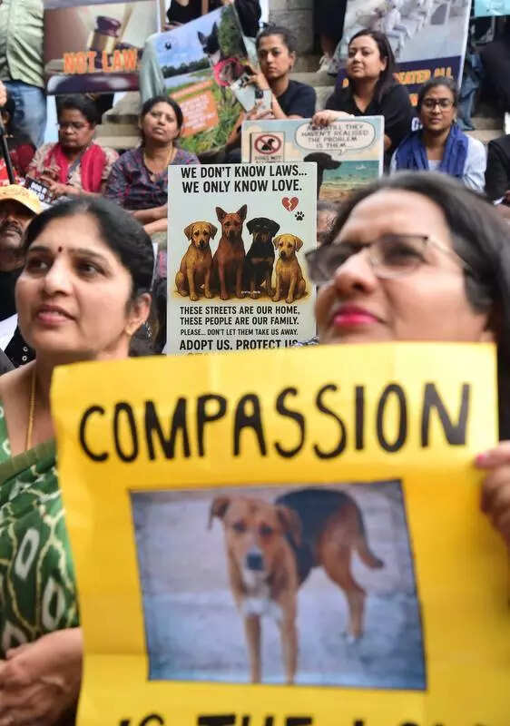 Bengaluru: Hundreds of pet lovers, NGOs, and aid centre members gathered at Freedom Park Tuesday to protest against the recent Supreme Court order directing state govts to immediately remove all stray dogs from public places, including schools, hospitals, and bus stands.The protesters urged the govt to first ensure there are enough shelters for stray dogs on the ground and implement an effective Animal Birth Control (ABC) programme. All five corporations under the Greater Bengaluru Authority (GBA) have started work to identify stray dogs in public spaces and remove them. The city saw one death and three dogbite cases in the past three months. The pet lovers urged the govt to address the root cause of the increasing number of dogbite cases. Questioning the failure of municipal bodies in preventing such cases, animal rights activist Sujatha Prasanna said, “If the Supreme Court has to come up with such an order, what is the reason? It is because we are not able to control the dog population, which means the ABC programme is not being implemented properly. The budget has to be used in the correct way, and scientifically. There should be fewer scams by the corporations.” Hemalatha, an emotional pet lover from Bannerghatta, told TOI, “We actually feed and take care of all the street dogs… We take care of the Indies like babies and know them by their names… Now this Supreme Court order that has been passed, it’s a bit heartbreaking. Shelters are not a good place for strays because they are very crowded. It is like putting human babies in orphanages. Is this how it is going to be?” Another protester highlighted the fact that the Animal Birth Control Rules 2023 state very clearly: no pounds, no shelters. “There is no provision for any kind of pounds or shelters as per the ABC rules. A dog which needs to be sterilised… needs to be released back to its own territory after the due procedure.”The protesters demanded that the Supreme Court reverse its order and municipal corporations like GBA stop misusing funds and instead properly, ethically, and scientifically implement the existing ABC and vaccination programmes to manage the dog population.