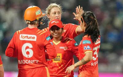 Gujarat Giants’ Sophie Devine celebrates with teammates (PTI Photo/Kunal Patil) Sophie Devine returned to form with a composed unbeaten 50 and a crucial bowling contribution as Gujarat Giants secured a commanding 45-run win over UP Warriorz in the Women’s Premier League on Thursday. After being sent in to bat, the Giants recovered from early hiccups…