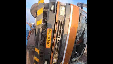 Koppal: A container truck illegally transporting cattle overturned after hitting a road divider near the Hitnal tollgate in Koppal taluk Tuesday morning, leading to the death of eight cows on the spot. According to Munirabad police, the truck was carrying around 34 cattle from Maharashtra to Bengaluru. Locals alleged that the cattle were being taken to a slaughterhouse. The accident occurred around 5am when the vehicle struck the divider, allegedly due to the driver’s negligence. “Eight cows died instantly, while more than twenty others were left suffocating inside the container. By the time assistance arrived, the driver and other occupants of the truck had fled,” said PSI Sunil Kumar of Munirabad police station.Sanjeeva Reddy, a resident of Hitnal village, was among the first to respond, alerting others in the village. Locals quickly gathered to rescue the surviving animals and demanded that they be relocated to the goshala (cow shelter) in Koppal. They also urged authorities to take strict legal action against those involved in the unlawful transport of cattle.