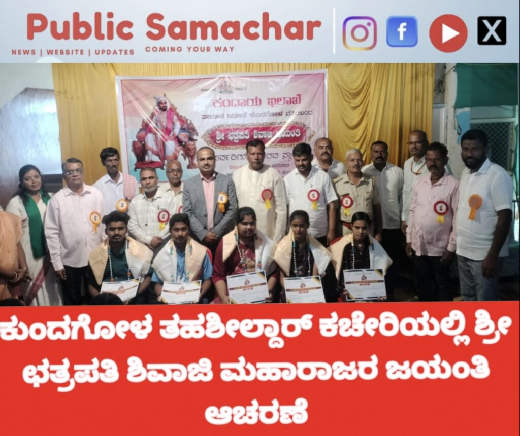 ಕುಂದಗೋಳ: ಪಟ್ಟಣದ ತಹಶೀಲ್ದಾರ್ ಕಚೇರಿ ಆವರಣದಲ್ಲಿ ಹಿಂದೂ ಸಾಮ್ರಾಜ್ಯೋತ್ಸವದ ಪ್ರತೀಕ, ಧರ್ಮೋದ್ಧಾರಕ ಶ್ರೀ ಛತ್ರಪತಿ ಶಿವಾಜಿ ಮಹಾರಾಜರ 396 ನೇ ಜಯಂತ್ಯುತ್ಸವವನ್ನು ಅತ್ಯಂತ ವಿಜೃಂಭಣೆಯಿಂದ ಆಚರಿಸಲಾಯಿತು. ಕಾರ್ಯಕ್ರಮದ ಅಂಗವಾಗಿ ಶಿವಾಜಿ ಮಹಾರಾಜರ ಭಾವಚಿತ್ರಕ್ಕೆ ವಿಶೇಷ ಪೂಜೆ ಹಾಗೂ ಪುಷ್ಪನಮನ ಸಲ್ಲಿಸುವ ಮೂಲಕ ಗೌರವ ಸಮರ್ಪಿಸಲಾಯಿತು.