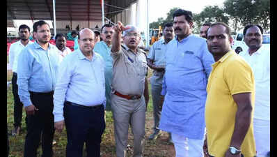 Pic: On Sunday, district minister Shivaraj Tangadagi, along with district-level officers, reviewed the location for the CM’s event scheduled for Oct 6 in KoppalKoppal: Chief minister Siddaramaiah is set to visit Koppal on Monday, Oct 6, to inaugurate several completed development projects and lay the groundwork for new initiatives.He will open a new 450-bed teaching hospital building of KMC-RI and lay the foundation stone for a super-specialty hospital. This event was postponed twice for various reasons.The CM will lay the foundation stone virtually for a total of 34 hostels, with 2 designated for each assembly constituency, across 41 assembly constituencies in 7 districts within the Kalyana Karnataka region. CM’s itinerary includes various programmes such as opening of GTTC Multi-Skill Development Centre, Horticultural Technology Park, Indira Canteen, and Akka Cafe.Subsequently, at 1.15pm, CM will attend the main event at Agadi Layout on Hosapete Road. Numerous completed development projects will be inaugurated, and new projects will have their foundation stones laid, with a total estimated value of Rs 2,000 crore. Additionally, facilities and rights will be symbolically handed over to beneficiaries of various schemes.District minister Shivaraj Tangadgi has confirmed that AICC president Mallikarjun Kharge, who recently underwent treatment, will also be present at the event.In anticipation of the CM’s visit, 1,500 buses from various KSRTC depots are being deployed to transport beneficiaries from different taluks of the district to Koppal, which may lead to a bus shortage in several districts on Oct 6. The Ballari divisional controller of the KKRTC has requested students and the public to cooperate.