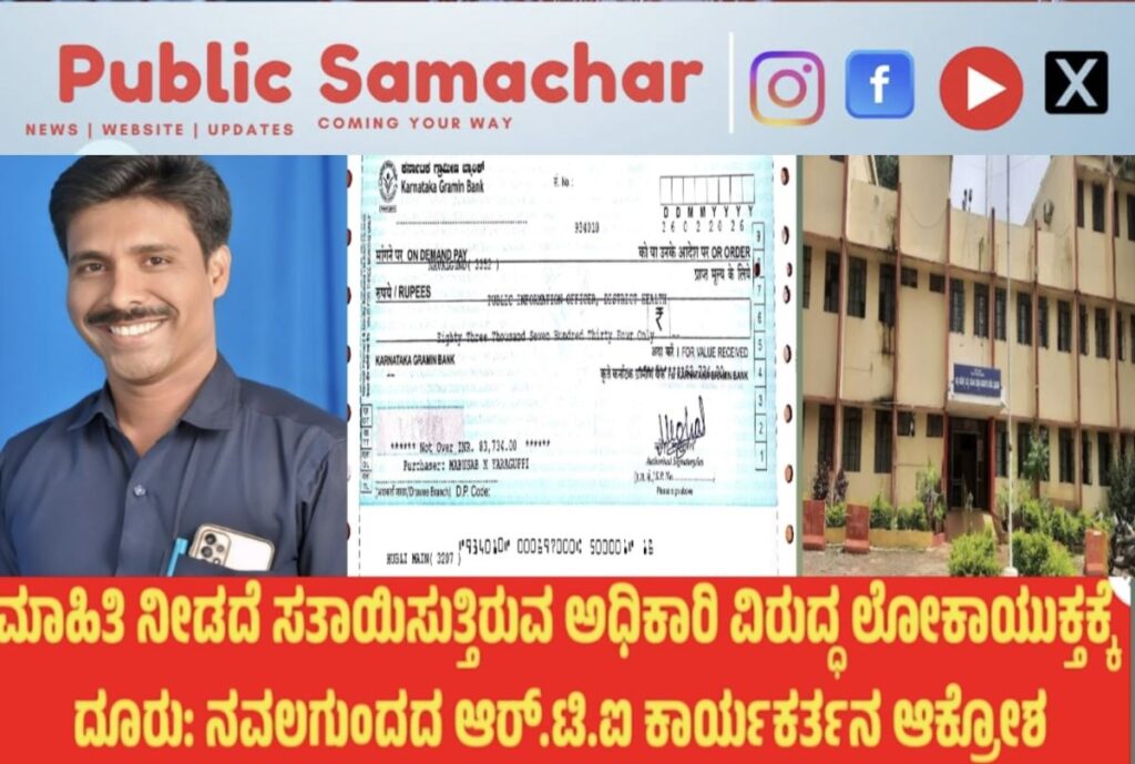 ನವಲಗುಂದ: ಮಾಹಿತಿ ಹಕ್ಕು ಕಾಯ್ದೆಯಡಿ ನಿಯಮಬದ್ಧವಾಗಿ ಸಾವಿರಾರು ರೂಪಾಯಿ ಶುಲ್ಕ ಪಾವತಿಸಿದರೂ ಮಾಹಿತಿ ನೀಡದೆ ಸತಾಯಿಸುತ್ತಿರುವ ಧಾರವಾಡ ಜಿಲ್ಲಾ ಆರೋಗ್ಯ ಮತ್ತು ಕುಟುಂಬ ಕಲ್ಯಾಣ ಇಲಾಖೆಯ ಸಹಾಯಕ ಆಡಳಿತಾಧಿಕಾರಿಯ ವಿರುದ್ಧ ಇದೀಗ ಲೋಕಾಯುಕ್ತಕ್ಕೆ ದೂರು ನೀಡಲಾಗಿದೆ. ಕರ್ತವ್ಯಲೋಪದ ಆರೋಪದಡಿ ಆರ್.ಟಿ.ಐ ಕಾರ್ಯಕರ್ತ ಮಾಬುಸಾಬ ಯರಗುಪ್ಪಿ ಅವರು ಈ ದೂರು ದಾಖಲಿಸಿದ್ದು, ಲೋಕಾಯುಕ್ತದಲ್ಲಿ ಪ್ರಕರಣ ದಾಖಲಾಗಿದೆ.