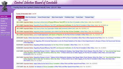 CSBC Bihar Police Driver exam on 10 Dec; admit card on this date, check official notice here