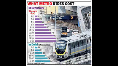 Bengaluru: Bangalore Metro Rail Corporation Ltd (BMRCL) is facing renewed criticism over the steep fare hike it introduced in Feb, after Delhi Metro Rail Corporation’s (DMRC) comparatively modest revision on Monday.Delhi Metro, effective Monday, raised ticket prices by just Re 1 to Rs 4 — and up to Rs 5 for the Airport Express Line — an average increase of about 7%. In contrast, Namma Metro fares were raised by up to 71% earlier this year, making travel significantly costlier for daily commuters.A fare comparison shows the extent of the gap. In Delhi, a passenger pays Rs 32 for a journey of up to 12km, but a similar amount (Rs 30) covers only 6km in Bengaluru. For trips up to 20km, Namma Metro commuters are charged Rs 70, while Delhi Metro charges Rs 43 for up to 21km. Delhi’s maximum fare is capped at Rs 64 beyond 32km, whereas in Bengaluru passengers pay Rs 80 for 20km–25km and Rs 90 for anything above that. Effectively, commuters in Bengaluru are paying as much as Rs 26 more for longer distances.The disparity is stark when measured against the scale of the two networks. Delhi Metro operates across 395km, while Namma Metro’s network stands at 96km after its latest expansion. This has led many to describe Bengaluru’s system as the costliest Metro service in the country.DMRC principal executive director (corporate communications) Anuj Dayal said the hike was modest and structured with riders in mind. “…There are discounts on smart cards, travelling during non-peak hours, and others. The revision was based on recommendations of the fare-fixation committee (FFC),” he told TOI.BMRCL’s hike was also based on FFC recommendations. Initially, fares were raised by up to 110%, but they were pared down to 71% after public backlash. Citizens and advocacy groups have since demanded the release of the FFC report and farebox revenue data, but BMRCL hasn’t obliged.Commuters say the hike is unjustified. “For long-distance travellers, spending Rs 180 per day, bikes work out cheaper… Trains are packed after the Yellow Line opened, but BMRCL hasn’t increased frequency. Hiking fares without addressing service quality is not acceptable,” said Sudheendra, a daily user. Bangalore South MP Tejasvi Surya called the hike “absolutely illogical” and demanded transparency. “Namma Metro is the costliest in India. It’s unaffordable to many. It’s even more shameful that they haven’t published the FFC report yet,” he opined.A senior BMRCL official defended the position, noting that the Delhi and Bengaluru projects aren’t directly comparable. “DMRC is a much older project. Their investment size, land acquisition costs, and guarantees for raising multilateral funding differ. At this stage, we cannot comment on their price revision,” he said.