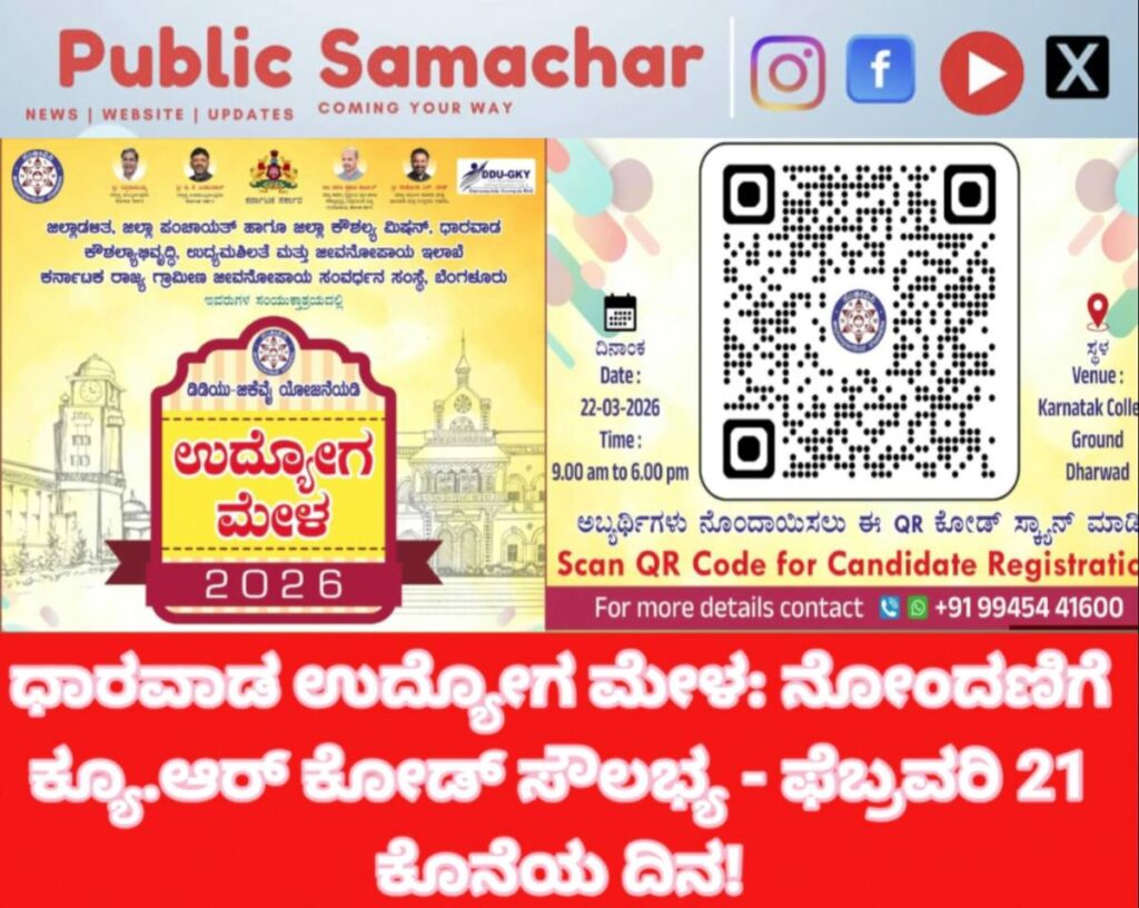 ​ಧಾರವಾಡ ಉದ್ಯೋಗ ಮೇಳ: ನೋಂದಣಿಗೆ ಕ್ಯೂ.ಆರ್ ಕೋಡ್ ಸೌಲಭ್ಯ – ಫೆಬ್ರವರಿ 21 ಕೊನೆಯ ದಿನ!