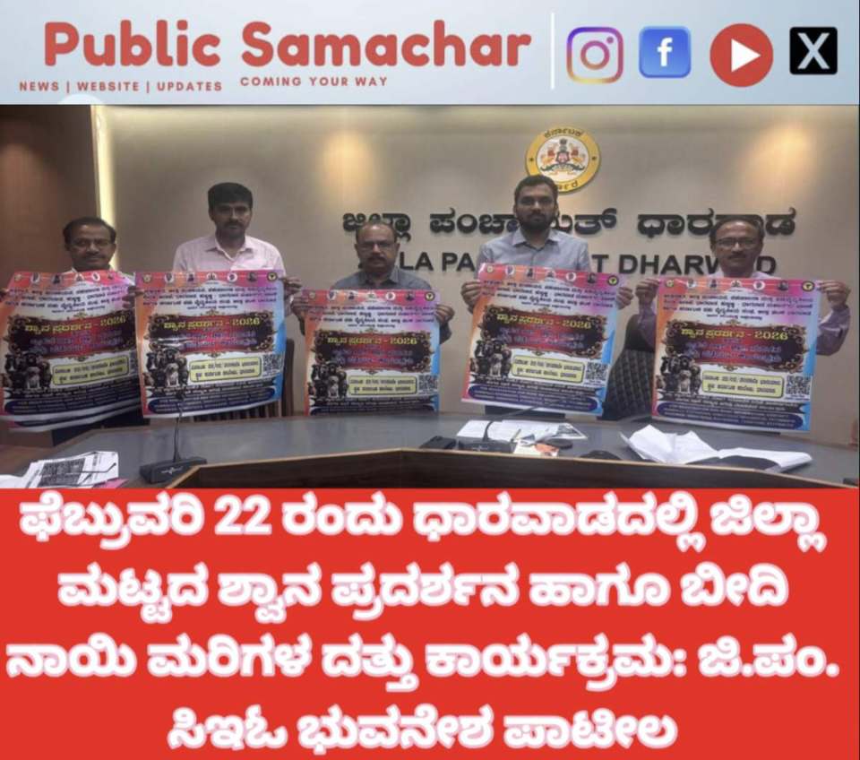 ಧಾರವಾಡ: ಹುಬ್ಬಳ್ಳಿ-ಧಾರವಾಡ ಮಹಾನಗರ ಹಾಗೂ ಜಿಲ್ಲೆಯಲ್ಲಿ ಬೀದಿ ನಾಯಿಗಳ ನಿಯಂತ್ರಣ ಮತ್ತು ನಿರ್ವಹಣೆ ಕುರಿತು ಸಾರ್ವಜನಿಕರಲ್ಲಿ ಜಾಗೃತಿ ಮೂಡಿಸಲು ಫೆಬ್ರವರಿ 22 ರಂದು ಕರ್ನಾಟಕ ಕಾಲೇಜು (ಕೆ.ಸಿ.ಡಿ) ಆವರಣದಲ್ಲಿ ಜಿಲ್ಲಾ ಮಟ್ಟದ ಶ್ವಾನಗಳ ಪ್ರದರ್ಶನ, ಪೆಟ್ ಫ್ಯಾಶನ್ ಶೋ ಹಾಗೂ ಬೀದಿ ಶ್ವಾನ ಮರಿಗಳನ್ನು ದತ್ತು ಪಡೆಯುವ ವಿಶೇಷ ಕಾರ್ಯಕ್ರಮವನ್ನು ಆಯೋಜಿಸಲಾಗಿದೆ ಎಂದು ಜಿಲ್ಲಾ ಪಂಚಾಯತ್ ಮುಖ್ಯ ಕಾರ್ಯನಿರ್ವಾಹಕ ಅಧಿಕಾರಿ ಭುವನೇಶ ಪಾಟೀಲ ಅವರು ತಿಳಿಸಿದ್ದಾರೆ.