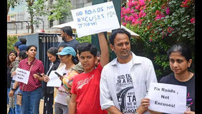 Bengaluru: “Too late. Ten minutes earlier, he might have been saved.” These words from the medical staff continue to haunt Gayathri Natarajan, who lost her father-in-law just two weeks ago. Despite rushing him in an ambulance, peak-hour traffic and the battered Varthur–Gunjur SH-35 road turned into a cruel barrier between life and death as he could not be taken to hospital in time.On Saturday, still holding back tears, Gayathri stood among hundreds of residents — children, seniors, and families— who gathered in silence near Prestige Lake Side Habitat and Candeur Signature Apartments on the Varthur-Gunjur Road in the Mahadevapura area. Their sole demand was something as basic as safe roads. Not just Gayathri and her neighbours, people joined peaceful demonstrations at multiple apartments in Varthur, Gunjur, Panathur, Balagere and Sarjapur-Dommasandra Road demanding pothole-free and dust-free roads. Commuters say it is a daily struggle to leave Varthur and reach other parts of the city, especially for those working on ORR, Old Airport Road, and Whitefield. Though the Karnataka Road Development Corporation Limited (KRDCL) had taken up widening work on SH-35 (which connects Shidlaghatta in the north to Anekal in the south), bottlenecks have become common as the road narrows to less than 30 metres through Varthur village and again at Gunjur. Moreover, the project has dragged on for the last six years and congestion has only fuelled commute-related fatigue, road rage and loss of lives.“My father-in-law had a health issue and I was trying to take him to the hospital, which is less than 3.5km from my apartment. But the ambulance was stuck in traffic on Varthur Road and reached 20 minutes late. Despite the siren, we couldn’t move. We lost a life only because the road failed us. Road widening has been happening for years now, can’t they at least fill up potholes?” said Gayathri, a resident of Prestige Lakeside Habitat.Even the alternative routes, the CBD Road and Panathur-Balagere Road, are in shambles. Families, IT employees, and schoolchildren using these roads, say they are left with “no single good road” to exit Varthur-Gunjur, making both daily commutes and emergencies a nightmare.Quotes:Renuka Narayan Swamy, resident of Prestige Lakeside Habitat We’ve been living here for six years, and not a single proper road exists to get out of Varthur. This is a state highway, yet it’s riddled with potholes and constant bottlenecks. Every day, we lose hours of our time and money because of this. It’s shameful. I vote here, I pay taxes here — I have every right to demand better roads.Om Prakash Jha, resident of VarthurIn my 40 years, this is the first time I’ve ever joined a protest. My wife and I deal with the terrible traffic and broken roads on Balagere–Panathur Road every day on our way to work — but today, I’m here for our children. The recent school bus accident shook us to the core. It’s terrifying to think that just sending our kids to school could put their lives at risk because of these dangerous roads.Gowdhaman Ponnusamy, General Secretary, RWA, Candeur Signature Apartment, Varthur We moved here mainly for the schools because we didn’t want our kids to travel long distances. This part of the city has some really good schools. But sadly, now it’s the kids who are stuck every morning on these broken roads. What we need are permanent fixes — not temporary patchesNaveen Venneti, resident of Prestige Lakeside Apartment What are we doing wrong that we can’t get better roads? We pay taxes like everyone else, yet our infrastructure only gets worse every day. The constant delays and traffic leave us so frustrated that we hardly have any time or energy left for our personal lives.—-—-—-—-—-—-—-—-—-——INSET – 2 (to go With PIC)Bhargav, 5th grade student from Gunjur“Our roads are in really bad shape. The government says it’s facing many challenges, but from what I see, it looks like no one is fixing the roads. Our parents suffer, we suffer. This even affects my education — when I get to school, I’m exhausted. I can’t concentrate or learn properly. I feel like I haven’t slept for two days. It’s really bad. The Panathur underpass, for example, hasn’t been repaired in over a year. Have they forgotten about it?” INSET – 3 Standoff between residents & police Residents of Varthur and Gunjur organized protests against deteriorating road conditions and worsening traffic outside their apartment complexes. However, Varthur police intervened, stating that forming human chains or holding protests outside private residences is prohibited. They directed residents to hold demonstrations only at designated public spaces, such as Freedom Park, located 24 km away. With limited options, the residents instead staged peaceful protests along the carriageways within their apartment premises, holding placards to voice their concerns.