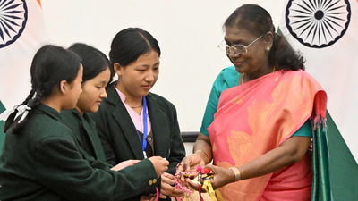 MADIKERI: The rare moment of celebrating Raksha Bandhan with the country’s first citizen, the President, was enjoyed by the students of Ekalavya School in Kodagu.The students of Ekalavya Model Residential School in Balugodu met President Draupadi Murmu and celebrated Raksha Bandhan.The Rashtriya Raksha Bandhan programme organised by the National Tribal Students’ Educational Sindhu Institute in Delhi was attended by the tribal community residential schools of Raichuru, Belagavi, Kolar, and Kodagu districts from the state. Draupadi Murmu has a special feature of celebrating Raksha Bandhan with those serving in different sectors every year, and accordingly, this year she wanted to celebrate it with students from the tribal community.Following her decision, students of Balugodu Ekalavya Model Residential School, led by Komal Gupta, music teacher, students L.M. Pratiksha, C.L. Kannika, Tanvi Thangamma, H.K. Neha, and K.M. Prakriti participated in it. The President discussed the method, style, progress, infrastructure, and needs of the school’s education with the students and teachers.