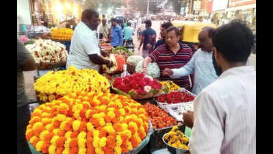 Pic: Flowers being sold at Janata Bazaar in HubballiHubballi: The sharp hike in flower prices just before Ganesh Chaturthi has turned into a burden for households. White and yellow sevanthi (chrysanthemum) flowers are priced at Rs 300-350 per kg in wholesale markets, roses at Rs 150 per kg, and marigold yellow and orange at Rs 80-100 per kg. While consumers were just recovering from the flower rates during last Amavasya, the skyrocketing festival prices have shocked them further.In the month of Shravana, various pujas such as Varamahalakshmi puja, Rayara Aradhane, and Satyanarayana puja were performed. Special pujas, decorations and rituals are going on daily in temples and shrines. Now, people are all set to celebrate the Ganesh festival amid the price hike situation.According to the wholesale market, earlier and during the last festival, sevanthi (white & yellow) flowers were priced at Rs 220-250 per kg in wholesale market, roses cost Rs 80-100 per kg, and marigold yellow and orange were sold at Rs 50-70 per kg. All these flowers are used for all festivals.According to a source in the horticulture department, every year, flowers are grown in around 250 hectares across the district. Sevanthi is grown in 80 hectares, marigold in 50 hectares, and rose in 20 hectares. During rainy season, the production is less and demand is more. This is the main reason for the flower price hike.Ishwar Ghodke, a flower merchant, said that the prices of various flowers for the Ganesh Chaturthi and other festivals have increased. Specifically, sevanthi flower has high demand. The price of sevanthi is between Rs 200 to 250 per kg. Therefore, the cost in the market has risen, he said.Kavita Muragod from Sirur Park, Hubballi, said that the price of flowers for Ganesh Chaturthi has risen but Ganesh festival is a big festival. Sevanthi and marigold flowers used for decorations cost about Rs 100 more for each. Despite the price rise, the festival has to be celebrated traditionally, she said.Imtiyaz C Changapuri, senior assistant director of the horticulture department, said that approximately 250 hectares of various flowers are grown in the district. Due to less production of various flowers, the demand will be more during the festival.