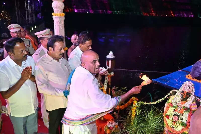 Mandya: To encourage wider participation in the ongoing Cauvery Aarti, the govt has announced free entry to Krishna Raja Sagar (KRS) dam and Brindavan Gardens until Oct 2. The move was met with a tremendous response, drawing thousands of visitors since its inauguration on Thursday.The Cauvery Aarti, a devotional and cultural initiative, is being held every evening at the Brindavan Gardens, highlighting the sanctity of the River Cauvery while blending spirituality with cultural vibrancy. The venue has now transformed into a centre of religious and cultural activity, attracting families, tourists, and locals alike. Apart from various cultural programmes and a laser show, which starts at 5.30pm in the evening, the Cauvery Aarti is being held daily.Since the inauguration, footfall at KRS has surged, with people gathering in large numbers to witness the rituals, illuminated gardens, and musical fountain. Authorities have put in place crowd management measures and visitor amenities to ensure a smooth experience. The devotional hymns, traditional rituals, and festive atmosphere have left many with memorable experiences. Officials noted that the free entry initiative boosted awareness of the Cauvery’s cultural heritage and significantly increased participation. The programme will culminate with a grand concluding ‘aarti’ on Oct 2.Speaking about the response, Jayanth, executive engineer, Cauvery Neeravari Nigam, said, “It is an overwhelming response for Cauvery Aarti. People are also calling us to appreciate the programme. For the first time, entry to KRS was made free to promote Cauvery Aarti. Whoever attends the event is also being offered free ladoos.”