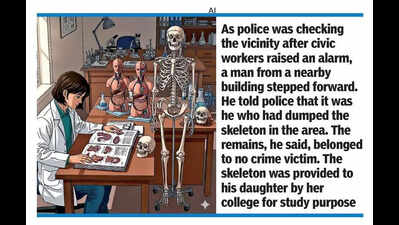 Bengaluru: The stench of rotting garbage is not unusual for pourakarmikas on the morning shift. But on Tuesday, as they made their way through the dumpyard in Govinda Shetty Palya, a residential pocket off Electronics City, something out of the ordinary caught their eye: a human skull, its empty sockets staring up from a mound of trash.A few paces away, the bones of arms and legs lay jumbled in the pile. For a moment, work stopped. Word spread through the narrow lanes. Residents trickled in, covering their noses with their dupattas or shirt sleeves. Someone whispered the name of Dharmasthala. The ongoing investigation into alleged mass sexual violence and murders there — widely reported in the news — was the first thing that came to mind. Was this another unearthing?The pourakarmikas alerted police. By 8.30am, officers from Parappana Agrahara station, joined by the Hoysala patrolling team, reached the spot. They cordoned off the area and began asking residents if they had seen or heard anything the previous night.It was then that a man from a nearby building stepped forward. Soft-spoken and visibly uneasy, he introduced himself as Jaya Prakash. He told police that it was he who had dumped the skeleton. The remains, he said, belonged to no crime victim. They had been handed to his daughter by her college.His daughter is in her second year of MBBS at a private medical college in Virgonagar. As part of the anatomy course, students are issued human skeletons on payment of a deposit. The college charges Rs 4,000, which is refunded once the skeleton is returned after the term.According to a senior officer, Prakash told police that when his daughter mentioned returning the skeleton, he suggested skipping the process altogether. He decided it was not worth the trouble of reclaiming the deposit. Late on Monday night, he carried the bones and dumped them in the garbage yard, a short walk from his house.Police cross-checked his statement with the college authorities. They confirmed the skeleton had indeed been issued for academic use. With no evidence of foul play, and with Prakash volunteering the explanation, police chose not to register a case. He was let off with a warning.Prakash works in a private firm in the Jigani industrial area. His daughter’s name has been withheld at the family’s request.What began as a jolt ended by afternoon, in quiet relief. But for the pourakarmikas who first saw the skull glinting in the morning light, it is a sight they are unlikely to forget anytime soon.