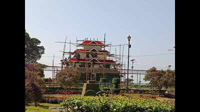 Madikeri: The horticulture department, in collaboration with the district administration and zilla panchayat, has organised a fruit and flower show at Raja Seat from Jan 24 to 26 in connection with Republic Day celebrations.According to Kodagu DC SJ Somashekhar, around 20,000 flowers of various species were grown and arranged across Raja Seat in about 8,000 pots and flower beds. The varieties included salvia, sevantige (chrysanthemum), chandu hu, genia, dianthus, impatiens, Vinca rosea, cox’s comb, dahlia and others.Key attractions included a floral replica of Kodagu’s famous Sri Bhagandeshwara Temple, measuring 33 ft in height, 18 ft in length and 23 ft in width, decorated using roses, sevanthige and aster in different colours.The show will be inaugurated by NS Boseraju, Kodagu district minister, in the presence of district MLAs and other dignitaries.Musical-themed floral artworks will include tabla, piano and harp designs in specified dimensions, decorated with the same flower varieties. As part of Republic Day themed displays, an 8 ft Amar Jawan artwork will be constructed and decorated with multi-coloured flowers. Additional floral installations will include a flying bird, fish, butterfly, flower bear and heart-shaped artwork.In total, 16 types of floral artworks will be created using an estimated 8 to 10 lakh sevantige flowers, along with orchids, desi and other flowers. About 60 stalls are being set up at Gandhi Maidan, including 10 stalls reserved for departments such as horticulture, coffee board, agriculture, animal husbandry, fisheries, Hopcoms, industry and commerce, while 50 stalls will be for nursery plant sales, farm implements and machinery.Farmers’ speciality fruits, vegetables, garden crops and samba crops will be showcased, with prizes for the best exhibits. Exhibits can be submitted and registered at the horticulture department from Jan 23. Dry flower arrangement, loose flower arrangement, ikebana and rangoli competitions will be held at Raja Seat Park for women and the general public.