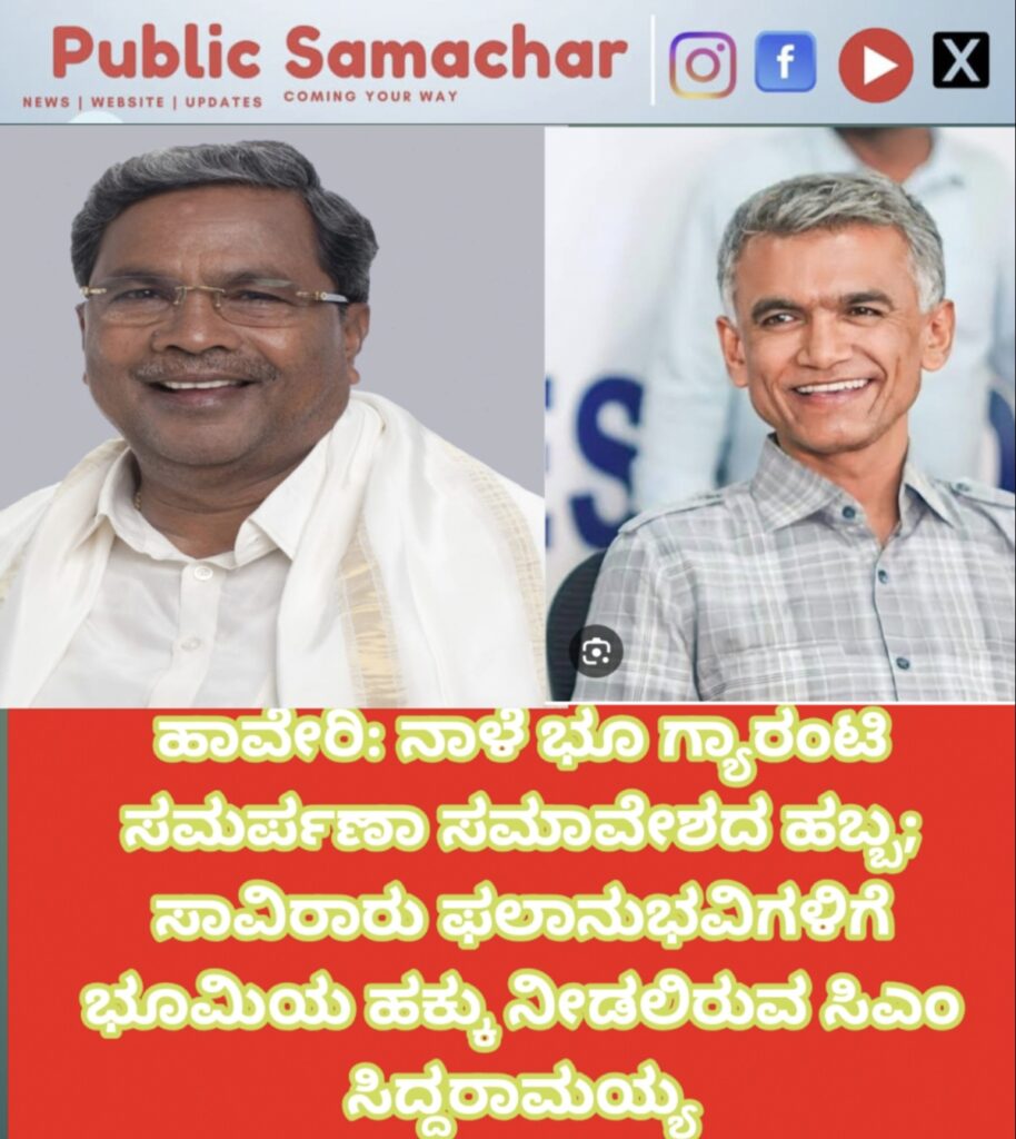 ಹಾವೇರಿ: ಜಿಲ್ಲೆಯ ಇತಿಹಾಸದಲ್ಲೇ ಅತ್ಯಂತ ದೊಡ್ಡ ಮಟ್ಟದ ಜನಕಲ್ಯಾಣ ಕಾರ್ಯಕ್ರಮಗಳಲ್ಲಿ ಒಂದಾದ ‘ಭೂ ಗ್ಯಾರಂಟಿ ಸಮರ್ಪಣಾ ಸಮಾವೇಶ’ಕ್ಕೆ ಹಾವೇರಿ ನಗರದ ಹೊರವಲಯವು ನವವಧುವಿನಂತೆ ಸಜ್ಜಾಗಿದೆ. ದಶಕಗಳಿಂದ ಭೂಮಿಯ ಹಕ್ಕು ಮತ್ತು ಸಾಗುವಳಿ ಚೀಟಿಗಾಗಿ ಕಾಯುತ್ತಿದ್ದ ಬಡವರ ಹಾಗೂ ರೈತರ ಕನಸು ನಾಳೆ ನನಸಾಗಲಿದ್ದು, ಮುಖ್ಯಮಂತ್ರಿ ಸಿದ್ದರಾಮಯ್ಯ ಅವರು ಈ ಬೃಹತ್ ಸಮಾವೇಶವನ್ನು ಉದ್ಘಾಟಿಸಿ ಜಿಲ್ಲೆಯ ಸಾವಿರಾರು ಫಲಾನುಭವಿಗಳಿಗೆ ನೇರವಾಗಿ ಹಕ್ಕುಪತ್ರಗಳನ್ನು ವಿತರಿಸಲಿದ್ದಾರೆ. ಸರ್ಕಾರದ ಆಶಯದಂತೆ ಪ್ರತಿಯೊಬ್ಬ ಅರ್ಹ ಭೂಹೀನನಿಗೂ ಭೂಮಿಯ ಒಡೆತನ ನೀಡುವ ಉದ್ದೇಶದೊಂದಿಗೆ ಆಯೋಜಿಸಲಾಗಿರುವ ಈ ಕಾರ್ಯಕ್ರಮವು ಜಿಲ್ಲೆಯಾದ್ಯಂತ ಭಾರಿ ಕುತೂಹಲ ಮೂಡಿಸಿದೆ.