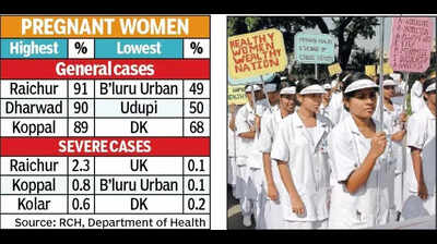Bengaluru: Alarmingly high levels of anaemia continue to afflict pregnant women in Karnataka, with northern districts faring the worst, Karnataka Anaemia Status Report 2024-25 shows. The report highlights stark disparities between regions, raising concerns over maternal and neonatal health. Statewide, 74% of newly registered pregnant women were found to have haemoglobin (Hb) levels below 11 g/dl, classifying them as anaemic. Districts such as Raichur (91%), Dharwad (90%), and Koppal (89%), while Belagavi (87%) and Bidar (85%) too were far above the state average. Bengaluru Urban (49%) and Udupi (50%) reported the lowest prevalence of general anaemia. Experts said India often uses a benchmark of 10 g/dl, but the gaps between districts remain stark. Dr Raghavi Karnam, gynaecologist and research physician at PHRII, said anaemia in northern Karnataka is often linked to worm infestation caused by open defecation. “Regular deworming is vital for iron absorption,” she said, adding that B12 deficiencies also affect those who lack greens in their diet. She also cited education and lifestyle factors as key drivers. “Udupi fares better because pregnancies in late teens are fewer and dietary practices are healthier,” Dr Karnam said. Raichur also topped the list of severe anaemia (Hb ≤ 7 g/dl) cases, with 2.3% of its 41,482 pregnant women severely anaemic, compared to the state average of 0.4%. Koppal (0.8%), Kolar (0.6%), and Chikkaballapur (0.6%) also recorded worrying levels.Experts warn that such inequalities could undermine Karnataka’s progress towards Sustainable Development Goal (SDG) 3, which focuses on maternal health and nutrition. Dr Indira Kabade, deputy director, nutrition, health and family welfare department, said misconceptions continue to hamper iron tablet consumption. “Some women throw away iron tablets but keep empty covers to show compliance,” she said, noting that fears of C-sections persist. She stressed the need for family awareness and early interventions. “We have begun screening schoolchildren and providing iron supplements, so the cycle of anaemia stops with the next generation,” Dr Kabade said, emphasising the importance of preventive measures for long-term impact.