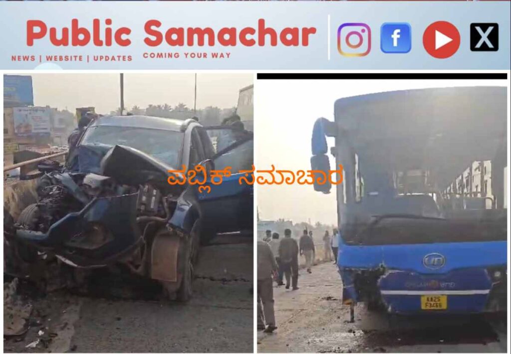 ​ಹುಬ್ಬಳ್ಳಿ: ಉಣಕಲ್ ಬಳಿ ಭೀಕರ ಅಪಘಾತ; ಬಿಆರ್‌ಟಿಎಸ್ ರಸ್ತೆಯಲ್ಲಿ ಚಿಗರಿ ಬಸ್-ಕಾರು ಮುಖಾಮುಖಿ ಡಿಕ್ಕಿ