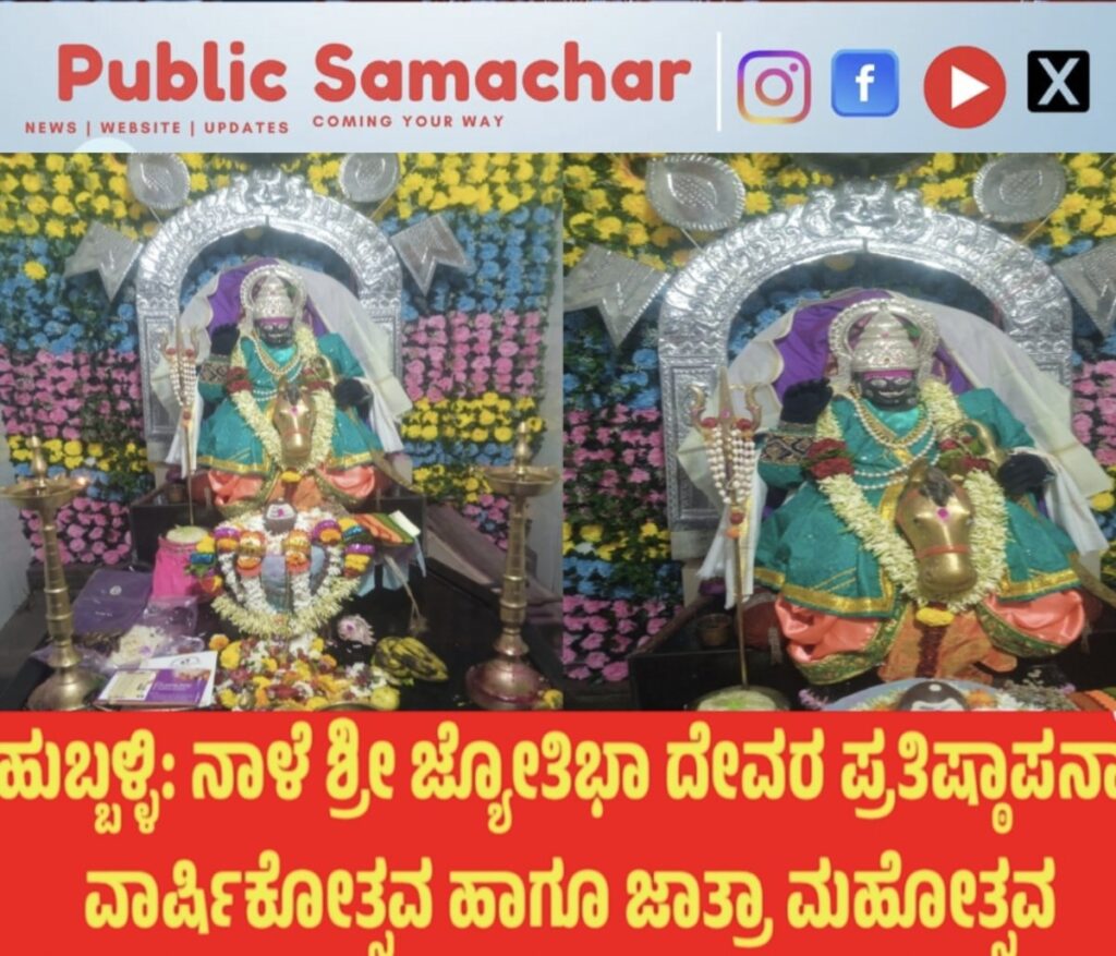 ​ಹುಬ್ಬಳ್ಳಿ: ನಾಳೆ ಶ್ರೀ ಜ್ಯೋತಿಭಾ ದೇವರ ಪ್ರತಿಷ್ಠಾಪನಾ ವಾರ್ಷಿಕೋತ್ಸವ ಹಾಗೂ ಜಾತ್ರಾ ಮಹೋತ್ಸವ