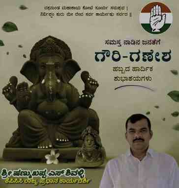 ಹುಬ್ಬಳ್ಳಿ: ನಾಡಿನ ಸಮಸ್ತ ಜನತೆಗೆ ಗಣೇಶ ಚತುರ್ಥಿಯ ಶುಭಾಶಯ ಕೋರಿದ ಕೆಪಿಸಿಸಿ ರಾಜ್ಯ ಪ್ರಧಾನ ಕಾರ್ಯದರ್ಶಿ ಷಣ್ಮುಖ ಶಿವಳ್ಳಿ ಅವರು, ಗಣೇಶ ಹಬ್ಬವು ಎಲ್ಲರ ಬಾಳಿನಲ್ಲಿ ಸುಖ-ಸಮೃದ್ಧಿ ತರಲಿ ಎಂದು ಹಾರೈಸಿದರು.