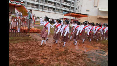 Pic: Uniforms of the school students were covered in mud and slush. Police, NCC cadets, home guards and schoolchildren participated in the 79th Independence Day parade at Nehru Stadium organised by the Hubballi taluk administration on FridayHubballi: The 79th Independence Day parade organised by Hubballi city taluk administration at Nehru Stadium here on Friday faced significant challenges due to the condition of the venue. Recent rains turned the ground into a slushy mess, highlighting its inadequacy for such a significant event. The movement of vehicles across the wet ground, coupled with poor maintenance, worsened the situation, dampening the spirit of the celebration.Participants, including police officers, home guards, NCC cadets, and hundreds of school children, performed in these less-than-ideal conditions. Their uniforms were quickly covered in mud and slush, making it difficult to maintain the dignity and decorum typically associated with such a national event.The enthusiasm and zeal that usually accompany the Independence Day celebrations were noticeably affected by the logistical challenges posed by the venue. Despite these setbacks, the participants showed remarkable resilience and commitment. They carried on with their performances, determined to honour the significance of the day.The event served as a reminder of the need for better planning and infrastructure to ensure that future celebrations can proceed smoothly, regardless of weather conditions. It also highlighted the need for contingency plans to address unforeseen weather-related challenges, ensuring that the spirit of the celebration is not dampened by logistical issues. Despite the challenges faced, the 79th Independence Day parade was a testament to the enduring spirit and resilience of those involved, who managed to celebrate the nation’s independence with pride and determination.Social activist Umesh Dushi stated that Hubballi, a bustling commercial hub, is in dire need of a proper parade ground. Despite numerous development projects worth hundreds of crores under various schemes, the city lacks a suitable venue for such events. Traditionally, the Nehru Stadium has been the go-to location for celebrating national festivals. However, the quality of work at the stadium has been subpar, leading to significant issues.Under the Smart City Mission, significant funds were allocated to develop the Nehru Stadium. Unfortunately, the poor quality of work has left the stadium in a regrettable state, failing to meet the city’s needs for a functional parade ground. This situation outlines the necessity for better planning and execution in infrastructure projects to ensure that public funds are utilised effectively and that the community’s needs are met.Mahesh Tenginakai, MLA from Hubballi-Dharwad Central, said that it is very painful to see the poor condition of Nehru Stadium. Despite the govt spending funds in crores, proper planning was not done, which affected today’s Independence Day celebration. “Proper planning was not done to make way for water to flow out of the stadium. I will convene a meeting with the officials concerned to direct them to make arrangements for rainwater to flow outside without affecting the ground and also to restrict the entry of heavy vehicles inside the stadium,” he added.