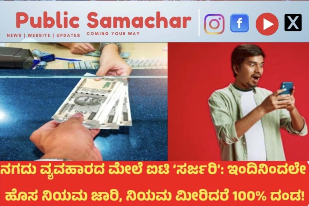 ನಗದು ವ್ಯವಹಾರದ ಮೇಲೆ ಐಟಿ ‘ಸರ್ಜರಿ’: ಇಂದಿನಿಂದಲೇ ಹೊಸ ನಿಯಮ ಜಾರಿ, ನಿಯಮ ಮೀರಿದರೆ 100% ದಂಡ!