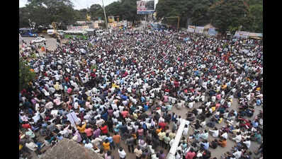 Caption: Thousands of job aspirants block the busy Alur Venkatrao Circle in Dharwad on Thursday as they take out a rally to urge the state government to fill vacant posts in government departmentsDharwad: Several job aspirants took out a huge rally in Dharwad on Thursday under the banner of All Karnataka State Students’ Association to urge the state govt to fill lakhs of vacancies in various govt departments.The rally, which began at Srinagar Circle, reached Alur Venkatrao Circle, where the protesters staged a sit-in dharna for some time. The job aspirants in a memorandum addressed to the CM and submitted to the DC said that over three lakh posts in various govt departments have been lying vacant for the past several years. Since there has been no recruitment in the past 7-8 years, the job seekers who have prepared for written examinations by attending coaching classes are feeling frustrated as they are crossing the maximum age limit. The non-filling of vacancies has affected the functioning of govt department and educational institutions, and the existing staff are overworked, the memorandum said.Demanding to raise the maximum age limit for recruitment, the protesters urged the govt to commence the recruitment process immediately.They also said there were translation mistakes in the Kannada language paper for the KAS examinations, and hence, the examination should be declared annulled, and a fresh notification should be issued.The rally caused traffic snarls at several junctions in the city, and police had a tough time diverting the traffic.