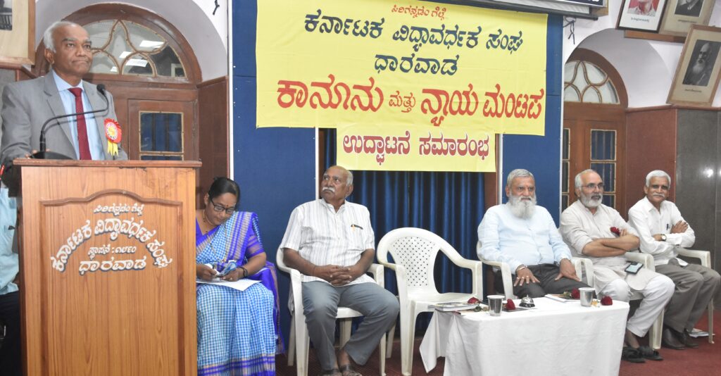 ನಗರದ ಪ್ರತಿಷ್ಠಿತ ಕರ್ನಾಟಕ ವಿದ್ಯಾವರ್ಧಕ ಸಂಘದ ‘ಕಾನೂನು ಮತ್ತು ನ್ಯಾಯ ಮಂಟಪ’ ಆಯೋಜಿಸಿದ್ದ ಪ್ರಸಕ್ತ ತ್ರೈವಾರ್ಷಿಕ ಅವಧಿಯ ಕಾರ್ಯಚಟುವಟಿಕೆಗಳನ್ನು ಉದ್ಘಾಟಿಸಿ ಅವರು ಮಾತನಾಡಿದರು. ನ್ಯಾಯವೇ ಸಮಾಜದ ಭದ್ರಬುನಾದಿಯಾಗಿದ್ದು, ಕಾನೂನಿನ ವಿಸ್ತೃತ ಫಲಿತಾಂಶಗಳು ನಮಗೆ ಸದಾ ದಾರಿದೀಪವಾಗಿರುತ್ತವೆ ಎಂದರು.