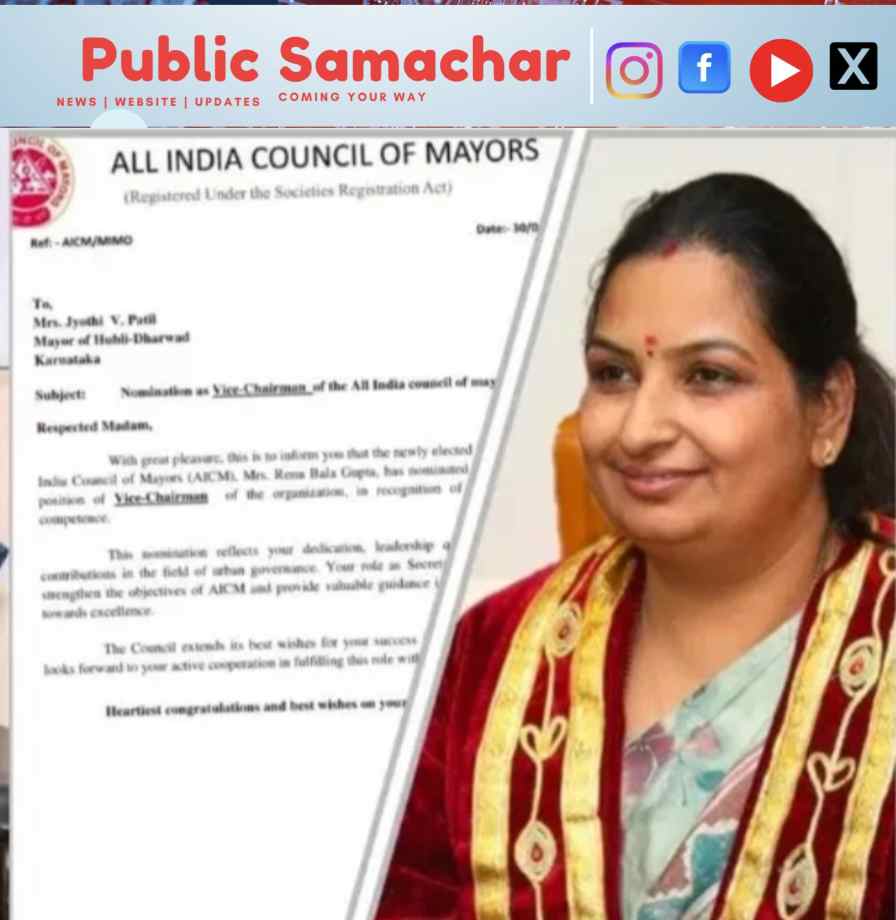 ಧಾರವಾಡ: ಹುಬ್ಬಳ್ಳಿ-ಧಾರವಾಡ ಮಹಾನಗರ ಪಾಲಿಕೆಯ ಪ್ರಥಮ ಪ್ರಜೆ ಜ್ಯೋತಿ ಪಾಟೀಲ್ ಅವರು ಅಖಿಲ ಭಾರತ ಮಹಾಪೌರರ ಮಂಡಳಿಯ (ಆಲ್ ಇಂಡಿಯಾ ಕೌನ್ಸಿಲ್ ಆಫ್ ಮೇಯರ್ಸ್) ಉಪಾಧ್ಯಕ್ಷರಾಗಿ ನೇಮಕಗೊಂಡಿದ್ದಾರೆ.