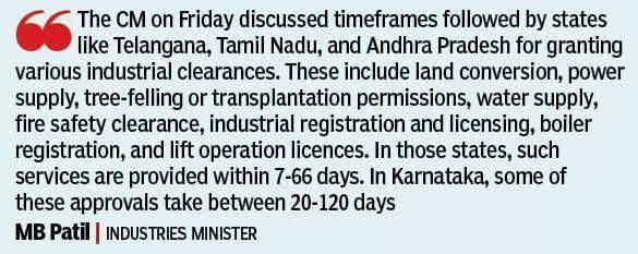 Bengaluru: Despite Karnataka’s tall claims of being an investor-friendly destination, the state appears to be faltering in providing timely clearances for industries, with prolonged delays forcing several investors to turn to neighbouring states. A study commissioned by industries minister MB Patil — and accessed by TOI — shows Karnataka takes nearly 120 days for land conversion alone, compared to anywhere between 0 and 60 days in Andhra Pradesh, Telangana, and Tamil Nadu. In Telangana, the land conversion timeline is 30 days, while Tamil Nadu completes the process in 22 to 66 days. Andhra Pradesh, meanwhile, does not require any land-use change approvals as conversions are deemed automatic. The findings have prompted chief minister Siddaramaiah to step in. Officials say he was deeply concerned after the study showed companies often face a wait of 300 to 450 days before they can even begin operations in Karnataka, excluding the construction phase. The study also highlighted other bottlenecks. Securing a fire department NOC in Karnataka takes up to 60 days, while neighbouring states issue clearance within 7 to 30 days. Consent for establishment (CFE) approval from Karnataka State Pollution Control Board (KSPCB) takes between 30 and 90 days, compared with 7 to 45 days elsewhere in the south. The industries department has also recorded investor feedback. One electric vehicle (EV) manufacturer said, “There is an urgent need to simplify business approval processes — delays at KSPCB is a key bottleneck affecting ease of doing business.” Another large conglomerate alleged KSPCB withheld its CFE for 250 days, citing constant clarifications and inspections. A semiconductor firm said current fire safety guidelines were outdated and not aligned with advanced requirements of modern semiconductor manufacturing. On Friday, at a high-level meeting with ministers and officials, Siddaramaiah reportedly took KSPCB and fire departments to task over the delays. He told officials, “No official should provide a blanket objection citing some Supreme Court verdict. Look at neighbouring states and their way of functioning. It is the same SC directions which impacts them as well.” He urged departments to expedite clearances especially for land conversion, and warned action will be initiated against all officials who fail to clear files in a time-bound manner. He also flagged issues with the state’s single-window clearance system, saying there were complaints that approvals were not being granted within the stipulated period. He directed officials to include 29 additional services currently outside the single-window mechanism. At present, 115 services across 20 departments fall under the system. “The time limit to issue NOCs, including land use change, should be reduced,” he said. “Submit a detailed proposal. Under no circumstances should there be any delay.” He asked departments to coordinate in providing essential infrastructure to industries, including roads, water, and electricity. Karnataka attracted Rs 10.3 lakh crore in investments at this year’s Global Investors’ Meet, of which around 60% are already in the implementation stage. Proposals worth over Rs 1.5 lakh crore are being scrutinized. Priyank Kharge, IT-BT minister, revealed, “Tamil Nadu has 51 SEZs contributing 8.9% to its GDP, while Karnataka has 37 SEZs contributing 8.2%.” He said job creation depends on higher capital investment.
