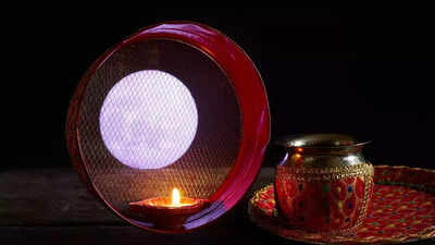 If you can’t perform Chandra darshan, you may complete your puja by looking at a silver or white metal plate filled with milk or water, representing the moon’s reflection. You can also use a Shivlinga, as Lord Shiva governs the moon. Gently look at the reflection and say your prayer. Many families in northern India follow this method when the sky is overcast — it’s considered a valid Vedic substitute.