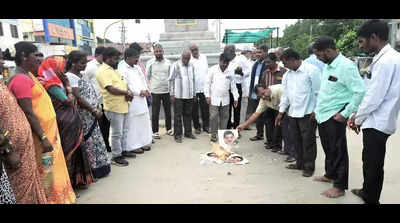 Pic: In a demonstration of their anger regarding yet another steel factory, protesters set fire to an effigy during a rally in KoppalKoppal: Industries minister MB Patil’s announcement of a new steel plant near Koppal has sparked public outcry. Last week, Patil revealed that Japan’s Sumitomo Corporation and Mukand Steels will establish Mukand Sumi Special Steel Ltd (MSSSL) at Kanakapura, 13km from Koppal, with an investment of Rs 2,345 crore. The minister described the project as a significant advancement for Karnataka’s steel industry, highlighting that the Japanese conglomerate Sumitomo’s investment would contribute to a state-of-the-art facility.However, the proposal faces resistance from residents and various organisations in Koppal, who oppose the establishment of a steel plant near the town due to serious health and pollution concerns. The announcement came just a week after chief minister Siddaramaiah visited the district on Sept 6 and criticised the Union govt for granting environmental clearance for the Baldota factory and assured that his administration respects the sentiments of the local population.“Though the Union govt has issued an environment clearance certificate for the factory, our govt respects the people’s verdict and is committed to the decision taken by Abhinava Gavi Siddeshwara Swamiji of Gavi Mutt,” the chief minister had said. Despite this assurance, the new project announced by industries minister Patil has shaken public confidence. Koppal, already struggling with industrial pollution, saw residents express fears about maintaining healthy lives, with many reporting health issues due to nearby industries.This is not the first instance of the community opposing such developments. A few months ago, Koppal experienced major protests against the proposed Baldota steel plant. There are now concerns that the new steel plant may compel residents to relocate.Activist Allamaprabhu Bettadur said, “All leaders, including many ministers, know about the present condition of Koppal, and still they are trying to set up more industries here.” Displaying their frustration, he and other protesters, along with representatives of various organisations, burnt the portrait of Patil.Protests also continued on social media platforms against the proposed steel factory. Many claim that despite a series of demonstrations and a video of the Gavi Mutt seer highlighting the dire situation, leaders remain focused on expanding industrial activities and securing kickbacks.