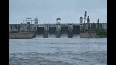 Mandya: Persistent heavy rainfall in the Cauvery catchment areas has led to a surge in the inflow to the Krishnaraja Sagar (KRS) dam, prompting authorities to increase the outflow to 1 lakh cusecs on Monday. This has triggered fresh flood concerns in the downstream areas in Mandya district. At 8am on Monday, the outflow was 31,550 cusecs. By 10am, it was raised to 70,000 cusecs, then to 80,000 cusecs by noon, before touching 1 lakh cusecs by evening. The water level at KRS dam has been more than 124ft since Aug 7, but the outflow has remained below 10,000 cusecs. Though the inflow was 12,262 cusecs and outflow was 11,083 cusecs on Sunday, the situation changed following heavy rainfall in the catchment area and both figures saw a massive jump on Monday. Issuing a flood alert, Mandya district administration advised people living along the riverbank villages to shift to safer locations along with their livestock. Tourist activities in Srirangapatna and Malavalli have been suspended, while traffic has been completely banned on the historic Wellesley Bridge in Srirangapatna. Several temples and religious sites along the river are already reeling under the impact of rising waters.Speaking to TOI, Chetana, Srirangapatna tahsildar, said, “Already 1 lakh cusecs of water is being released from the dam. We have instructed officials to ensure no one enters the water. Awareness drives are being carried out using public address systems to warn people to stay away from the river.”