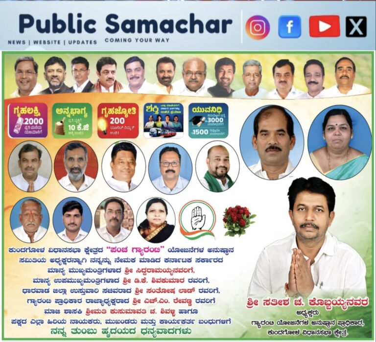 ರಾಜ್ಯ ಸರ್ಕಾರದ ಮಹತ್ವಾಕಾಂಕ್ಷೆಯ "ಪಂಚ ಗ್ಯಾರಂಟಿ" ಯೋಜನೆಗಳ ಪರಿಣಾಮಕಾರಿ ಅನುಷ್ಠಾನಕ್ಕಾಗಿ ಕುಂದಗೋಳ ವಿಧಾನಸಭಾ ಕ್ಷೇತ್ರದ ಅನುಷ್ಠಾನ ಸಮಿತಿಯ ಅಧ್ಯಕ್ಷರಾಗಿ ಶ್ರೀ ಸತೀಶ ಟಿ. ಕೊಬ್ಬಯ್ಯನವರ ಅವರನ್ನು ನೇಮಕ ಮಾಡಲಾಗಿದೆ.
