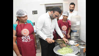 Pic: Labour minister Santosh Lad, also in-charge of Dharwad district, inaugurates an Akka Café in Dharwad by cutting vegetables instead of the customary ribbon Dharwad: Various programmes aimed at empowering women have been launched under the National Livelihood Mission and department of skill development, entrepreneurship, and livelihood, said district minister Santosh Lad.He said the objective of this mission is to reduce poverty levels in these areas. As part of the initiative, Akka Cafés have been launched, to be run by women’s self-help groups, which will significantly contribute to women’s economic empowerment, Lad said.The minister was speaking after inaugurating an Akka Cafe, run by Kamadhenu Women’s Self-Help Group in Dharwad.Lad explained that women are being organised under self-help groups and provided with various livelihood activities in agriculture and non-agriculture sectors. “Alongside this, continuous support is being given to help them lead a self-reliant life while progressing socially, economically, and politically. The govt is especially arranging capacity-building training so that women can enhance their knowledge and skills, secure sustainable livelihoods, and shape empowered lives. The govt has been striving to bring every woman into the mainstream of society by creating such opportunities,” he said.To further encourage women’s livelihood activities, the state govt, in the 2024–25 budget, announced the Akka Café programme. As per the govt order, 50 ‘Sanjeevini Akka Café’ will be established in rural areas to provide local, hygienic, and tasty food at affordable prices. Accordingly, Akka Cafés are being set up in Dharwad district headquarters as well as all taluk centres, Lad informed.