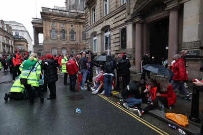 Emergency services attend the scene of a road traffic accident on Water Street after a car reportedly collided with pedestrians, as crowds gathered to attend the Liverpool Trophy Parade on May 26, 2025 in Liverpool, England. (Photo by Getty Images)