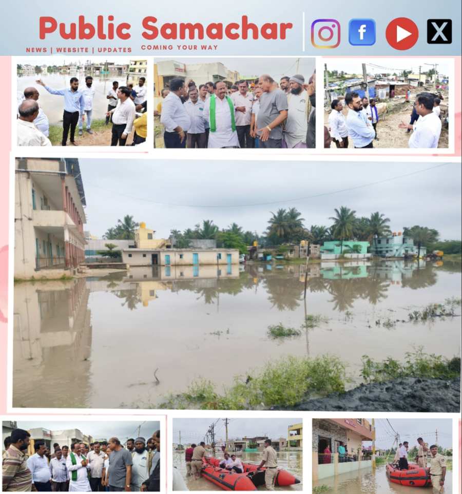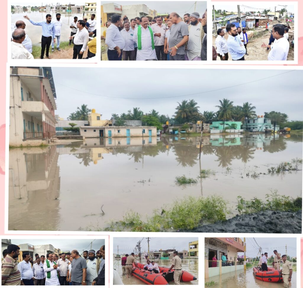 ಜಲಾವೃತ ಬಡಾವಣೆಗಳಿಗೆ ಭೇಟಿ, ಪರಿಹಾರಕ್ಕೆ ಆದೇಶ