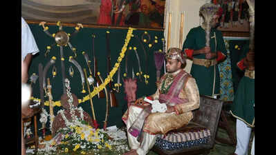 Mysuru: The Mysuru royal family concluded the private Dasara rituals with the Vijaya Yatre, taken out by scion of the royal family Yaduveer Wadiyar to the Bhuvaneshwari temple, where he performed the Shami puja on Thursday.As part of the Vijayadashami celebrations, which mark the victory of good over evil, the royal family enthusiastically participated in the religious rituals. Yaduveer removed his Kankana, the sacred thread worn on day 1 of the Dasara, and for the first time, stepped out of the Mysuru Palace since the commencement of the private Dasara festival on Sept 22. He took out the Vijaya Yatra symbolically and offered the Shami Puja, ending the private Dasara festival.Before this, traditional wrestlers staged the Vajramusti Kalaga duel, drawing blood as part of the age-old practice. Meanwhile, Yaduveer carried out the centuries-old rituals with grandeur and devotion to mark Ayudha Puja on Wednesday. The rituals began early in the morning with a Chandi Homa at 6am inside the palace. By 6.45am, the royal elephant, horse, and cow entered through the Elephant Gate, marking the commencement of the traditional proceedings. Between 7.30am and 7.42am, the royal weapons were ceremoniously taken to the Kodi Someshwara Temple and later returned to the palace between 8am and 8.40am.Later, at the Kalyana Mantapa of the palace, Yaduveer performed the Ayudha Puja, followed by a special ceremony at the Savari Thotti. Here, in the presence of royal priests, he offered puja to the elephant, horse, cow, palanquin, and private vehicles of the royal family. The grandeur of the rituals showcased the rich traditions of the Mysuru royal family, adding splendour to the ongoing Dasara festivities.A highlight of the Ayudha Puja at the Mysuru Palace was the worship of 32 different traditional weapons, each carrying historical and cultural significance. Among them are the royal sword dating back to the Vijayanagara period, the Vijaya Narasimha sword, the sword of Ranadhira Kantheerava, and the weapon used during the reign of Krishnaraja Wadiyar. Later, Yaduveer, dressed in royal attire, offered puja at the Kalyana Mantapa. The 32 weapons symbolise the arms wielded by Goddess Durga in her 18 hands.The royal family matriarch, Pramoda Devi Wadiyar, and the scion’s wife, Trishikha Devi Wadiyar, were present.