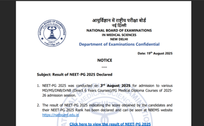 The National Board of Examinations in Medical Sciences (NBEMS) has declared the results of the National Eligibility cum Entrance Test for Postgraduate (NEET PG) 2025 today, Tuesday, August 19. Candidates who appeared for the examination can now access their results on the official portals — natboard.edu.in and nbe.edu.in.The NEET PG 2025 examination comprised 200 multiple-choice questions (MCQs), each with four possible responses. Candidates were required to select the most appropriate answer from the given options. The exam carried a negative marking system, deducting 25 percent of marks for each incorrect response, while unattempted questions did not attract any penalty.The test was conducted exclusively in English, with a total duration of three hours and thirty minutes.While the results have been declared today, NBEMS has notified that individual scorecards will be available for download from August 29, 2025. Candidates will need to log in using their registered credentials to access their scorecards.