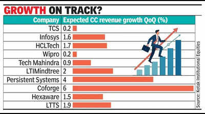 Bengaluru: India’s IT services sector is unlikely to post strong results for the September 2025 quarter. While Q2 is typically the best-performing quarter, Investec expects divergent results across companies as macroeconomic uncertainty, tariff risks, and client caution continue to affect discretionary spending. Both brokerages — Kotak Institutional Equities and Motilal Oswal Financial Services — expect modest sequential growth for Tier-I players in the quarter, while mid-tier firms are set to outperform. Kotak estimates revenue growth for Tier-I companies will range between 0.2% and 2%, with Infosys expected to lead at 2% quarter-on-quarter growth, followed by HCLTech at 1.7%. TCS and Wipro are forecast to trail, reporting around 0.2% growth each. Motilal Oswal projects similar trends, with Infosys likely to post 2.4% sequential growth, HCLTech at 1.7%, TCS at 1%, Wipro at 0.3%, Tech Mahindra at 1%, and LTIMindtree at 2%. Mid-tier companies, however, are expected to deliver stronger momentum. Kotak sees Coforge leading with 6% growth, followed by Persistent Systems at 4%. Motilal Oswal also highlights Coforge at 6%, Persistent at 3.7%, and Hexaware at 3.3% as strong performers, aided by ramp-ups of large cost-saving and consolidation deals. According to Investec, the September quarter is expected to show divergent performances across IT majors. Infosys, HCLTech, and Tech Mahindra are likely to deliver relatively stronger growth (in that order), while TCS and Wipro may report weaker results. Among tier-2 firms, Persistent, LTIMindtree, and Mphasis are expected to lead growth, with Zensar, LTTS, and KPIT facing headwinds — particularly from softness in the auto, manufacturing, and technology, media, and telecom (TMT) segments. Margins are expected to remain steady, supported by rupee depreciation, but analysts caution that pricing pressures, wage costs, and the deflationary impact of generative AI (GenAI) will limit gains. “GenAI is currently deflationary to the extent of 2–3%, especially in coding, summarisation, and contact-centre BPO,” Kotak noted, adding that its long-term impact on IT budgets remains uncertain. Across verticals, the BFSI segment is expected to remain resilient, while auto and retail continue to face headwinds from tariffs and margin pressures. Engineering, research and development (ER&D) firms are likely to post another soft quarter, particularly those exposed to automotive clients, though a pick-up is expected in the second half as delayed projects resume. Kotak has trimmed its FY26–FY28 earnings estimates by up to 3% and fair values by 2–9%, while Motilal Oswal believes a meaningful acceleration is unlikely until the next tech spending cycle, which could be 15–18 months away. Both brokerages hold differing views on guidance. Motilal Oswal expects HCLTech, Infosys, and LTTS to maintain their guidance, while Kotak believes HCLTech will retain its revenue guidance, but Infosys could raise it from 1–3% to 2–3%. Wipro is also expected to review its guidance this quarter, Kotak said. Investec has forecast EBIT margins to improve for most companies in Q2FY26, aided by a roughly 2% depreciation in the rupee. However, Wipro and Mphasis may see limited benefit due to hedge adjustments and transition costs on large deals. Margins, however, are expected to remain range-bound for most companies. “We expect margins to remain range-bound and supply-side pressures to stay muted; however, meaningful margin gains are limited ahead as they are being impacted by multiple fronts, including pricing, change in delivery models, client behaviour, and the GenAI transition,” Motilal Oswal said in its report. Infosys may see a 40-basis-point improvement from realisation gains. HCLTech’s EBIT margin may improve by 50 basis points despite restructuring and GenAI investments. Tech Mahindra and LTIMindtree are expected to post 50–60 basis-point margin gains on cost optimisation and a better offshore mix. Coforge’s EBIT margin could rise to 14%, up 80 basis points as ESOP costs taper. On the demand front, Investec said commentary is likely to remain largely unchanged, with continued caution around discretionary spending. Extended furloughs, timing of wage hikes, and rising onsite wage inflation remain key factors to watch, even as deal wins continue to be strong through the quarter.