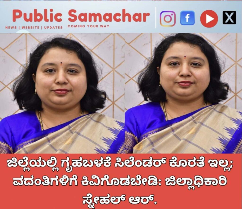ಜಿಲ್ಲೆಯಲ್ಲಿ ಎಲ್ಪಿಜಿ ಸಿಲೆಂಡರ್ ಕೊರತೆ ಇರುವುದಿಲ್ಲ. ಆದ್ದರಿಂದ ಸಾರ್ವಜನಿಕರು ಯಾವುದೇ ರೀತಿಯ ಭಯ ಅಥವಾ ಆತಂಕಕ್ಕೆ ಒಳಗಾಗಬಾರದು ಮತ್ತು ಸಾಮಾಜಿಕ ಜಾಲತಾಣಗಳಲ್ಲಿ ಹರಿದಾಡುತ್ತಿರುವ ವದಂತಿಗಳನ್ನು ನಂಬಬಾರದು ಎಂದು ಜಿಲ್ಲಾಧಿಕಾರಿ ಸ್ನೇಹಲ್ ಆರ್. ತಿಳಿಸಿದ್ದಾರೆ.