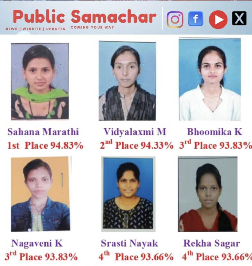 ಕಾಲೇಜಿನ ವಿದ್ಯಾರ್ಥಿಗಳು ಶೇಕಡಾವಾರು ಅಂಕಗಳನ್ನು ಗಳಿಸಿ ಗಮನಾರ್ಹ ಸಾಧನೆ ಮಾಡಿದ್ದಾರೆ. ವಿದ್ಯಾರ್ಥಿನಿ ಸಹನಾ ಮರಾಠಿ ಅವರು ಶೇ. 94.83ರಷ್ಟು ಅಂಕಗಳನ್ನು ಗಳಿಸುವ ಮೂಲಕ ಪ್ರಥಮ ಸ್ಥಾನವನ್ನು ಪಡೆದುಕೊಂಡಿದ್ದಾರೆ. ಹಾಗೆಯೇ, ವಿದ್ಯಾಲಕ್ಷ್ಮಿ ಎಂ. ಅವರು ಶೇ. 94.33ರಷ್ಟು ಅಂಕಗಳೊಂದಿಗೆ ದ್ವಿತೀಯ ಸ್ಥಾನ ಗಳಿಸಿದ್ದಾರೆ. ಭೂಮಿಕಾ ಕೆ. ಮತ್ತು ನಾಗವೇಣಿ ಕೆ. ಅವರು ಸಮಾನವಾಗಿ ಶೇ. 93.83ರಷ್ಟು ಅಂಕಗಳನ್ನು ಪಡೆದು ತೃತೀಯ ಸ್ಥಾನವನ್ನು ಹಂಚಿಕೊಂಡಿದ್ದಾರೆ. ಇದಲ್ಲದೆ, ಸೃಷ್ಟಿ ನಾಯಕ್ ಮತ್ತು ರೇಖಾ ಸಾಗರ್ ಅವರು ಶೇ. 93.66ರಷ್ಟು ಅಂಕಗಳೊಂದಿಗೆ ನಾಲ್ಕನೇ ಸ್ಥಾನ ಪಡೆದು ಉತ್ತಮ ಸಾಧನೆ ಮಾಡಿದ್ದಾರೆ.