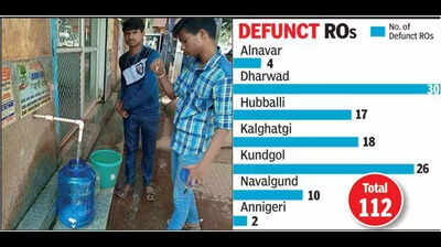 Dharwad: Reverse Osmosis (RO) technology has been very useful in providing clean drinking water in bulk to the people. Especially in rural areas, RO units have been of great help.Several govt departments, non-govt organisations and corporate houses have funded the establishment of RO units in Dharwad district. Some of these units have come up with grants from MPs, MLAs and MLCs under the local area development fund. Corporate houses have provided money under corporate social responsibility (CSR) funding.As a result, as many as 467 RO units were set up in Dharwad district. However, due to lack of maintenance and other reasons, 112 of these ROs have remained defunct for the last several years.Now the zilla panchayat has handed over these units to local gram panchayats asking them to get the units repaired and revived.Some of the RO units were given to private agencies for maintenance but many agencies have failed to maintain them properly. In some cases these agencies have not handed over the RO units to the department even after their period of contract is over.The rural drinking water supply department blame the private agencies for the RO units going defunct. The officials said some private agencies had not paid the electricity bills and had not maintained the units properly. Disruption of water supply is another reason for the failue of these RO units, the officials said.Handing over the maintenance of the ROs to GPs helps a lot because they will maintain the units properly. This will also help generate revenue for GPs, said an officer.He said the private agencies which were responsible for maintaining 52 RO units had not carried out their job properly and hence their deposit money to the tune of Rs 51 lakh has been confiscated. New tenders will be called for maintenance of ROs, an officer informed.