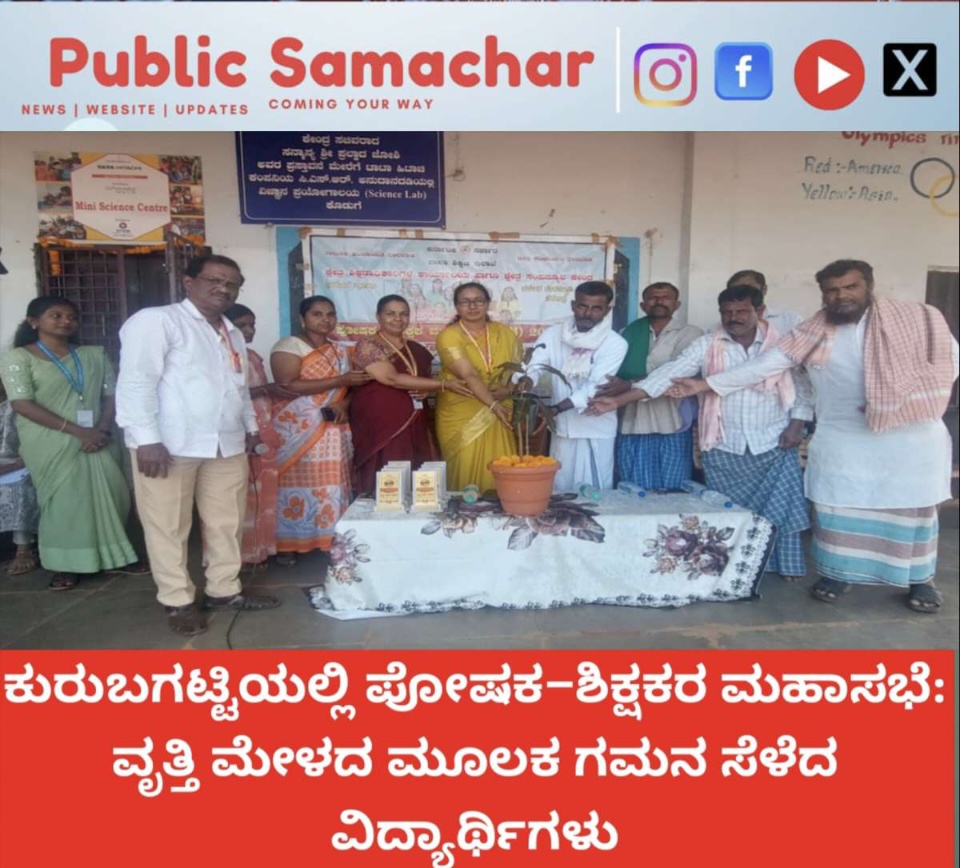 ಧಾರವಾಡ: ತಾಲ್ಲೂಕಿನ ಕುರುಬಗಟ್ಟಿಯ ಸರ್ಕಾರಿ ಪ್ರೌಢಶಾಲೆಯಲ್ಲಿ ಇತ್ತೀಚೆಗೆ ಪೋಷಕ-ಶಿಕ್ಷಕರ ಮಹಾಸಭೆ ಹಾಗೂ ವಿಶೇಷ ವೃತ್ತಿ ಮೇಳ ಅದ್ದೂರಿಯಾಗಿ ಜರುಗಿತು. ಕಾರ್ಯಕ್ರಮವನ್ನು ಎಸ್ಡಿಎಂಸಿ ಅಧ್ಯಕ್ಷ ಪುಂಡಲೀಕ ಗುಂಡಗೋವಿ ಅವರು ಸಸಿಗೆ ನೀರೆರೆಯುವ ಮೂಲಕ ಉದ್ಘಾಟಿಸಿ, ಶಾಲಾ ಚಟುವಟಿಕೆಗಳಲ್ಲಿ ಪೋಷಕರ ಸಹಭಾಗಿತ್ವದ ಅಗತ್ಯವನ್ನು ಒತ್ತಿ ಹೇಳಿದರು.