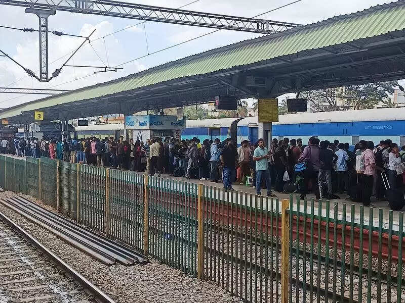 Bengaluru: KR Pura railway station, one of the city’s busiest gateways that handles nearly 10,000 passengers daily, was included in the Amrit Bharat redevelopment project 18 months ago. However, project progress has been slower here than at Bengaluru’s other stations such as Whitefield and Cantonment.Last Friday, the second platform at KR Pura station was packed with crowds pushing to board the Madurai-bound Vande Bharat Express. The station attracts significant foot traffic despite not being a terminal, largely due to its proximity to the city’s IT corridor along the Outer Ring Road and Whitefield. A total of 55 stations across the state were selected under the Amrit Bharat scheme, which aims to enhance station access, circulating areas, waiting halls, toilets, lifts, escalators, cleanliness, and free Wi-Fi facility. In contrast, other city stations under the scheme, such as Whitefield, Bengaluru Cantonment, and KSR Bengaluru, have experienced faster progress. Notably, Cantonment station has seen its iconic 160-year-old stone arch removed as part of the redevelopment. Commuters have consistently expressed inconvenience when using KR Pura station. Despite its strategic location near the IT corridor, basic amenities such as lifts and wide foot-over bridges (FOBs) are lacking, causing difficulties for passengers travelling from various parts of the country to the city. “Whenever a train arrives from Kerala or Tamil Nadu, more than half the passengers get off at KR Pura. It is very convenient for those who want to travel to east or north Bengaluru. Many depend on this station for their commute, but the facilities here are inadequate,” said Somaraj, a passenger. The second platform sees many high-priority trains halt, but it lacks direct access to the entry gates, making it challenging for senior passengers to navigate the FOBs. “I’m a senior citizen. To reach the second platform, I have to climb steep, narrow steps. Furthermore, the washrooms often don’t work. Having a station that is so accessible to public transport is great, but older people should also be able to use it,” said Mathew John, a resident of Hebbal.Third entry on the cardsSources within South Western Railway (SWR) indicate that a significant portion of the redevelopment project will focus on creating a third entry area for the station. New holding areas and other modern facilities will be available at the new entrance. “The initial phase of redevelopment was to improve the parking facility, which has progressed well. A new FOB, approximately 12 meters wide, will be constructed, but this requires re-sleeving and realigning the tracks, as the existing platform cannot accommodate the new FOB. The project also entails several other works, which is why it is progressing slowly and experiencing delays,” an SWR official told TOI.