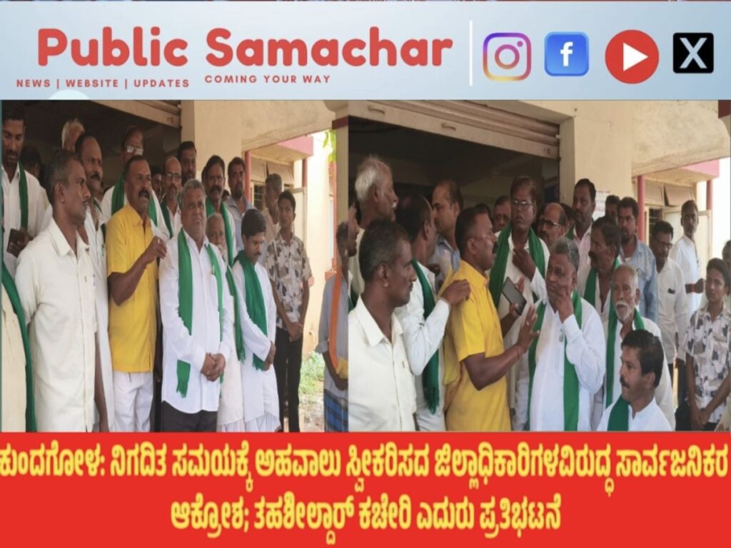 ಕುಂದಗೋಳ: ನಿಗದಿತ ಸಮಯಕ್ಕೆ ಅಹವಾಲು ಸ್ವೀಕರಿಸದ ಜಿಲ್ಲಾಧಿಕಾರಿಗಳ ವಿರುದ್ಧ ಸಾರ್ವಜನಿಕರ ಆಕ್ರೋಶ; ತಹಶೀಲ್ದಾರ್ ಕಚೇರಿ ಎದುರು ಪ್ರತಿಭಟನೆ