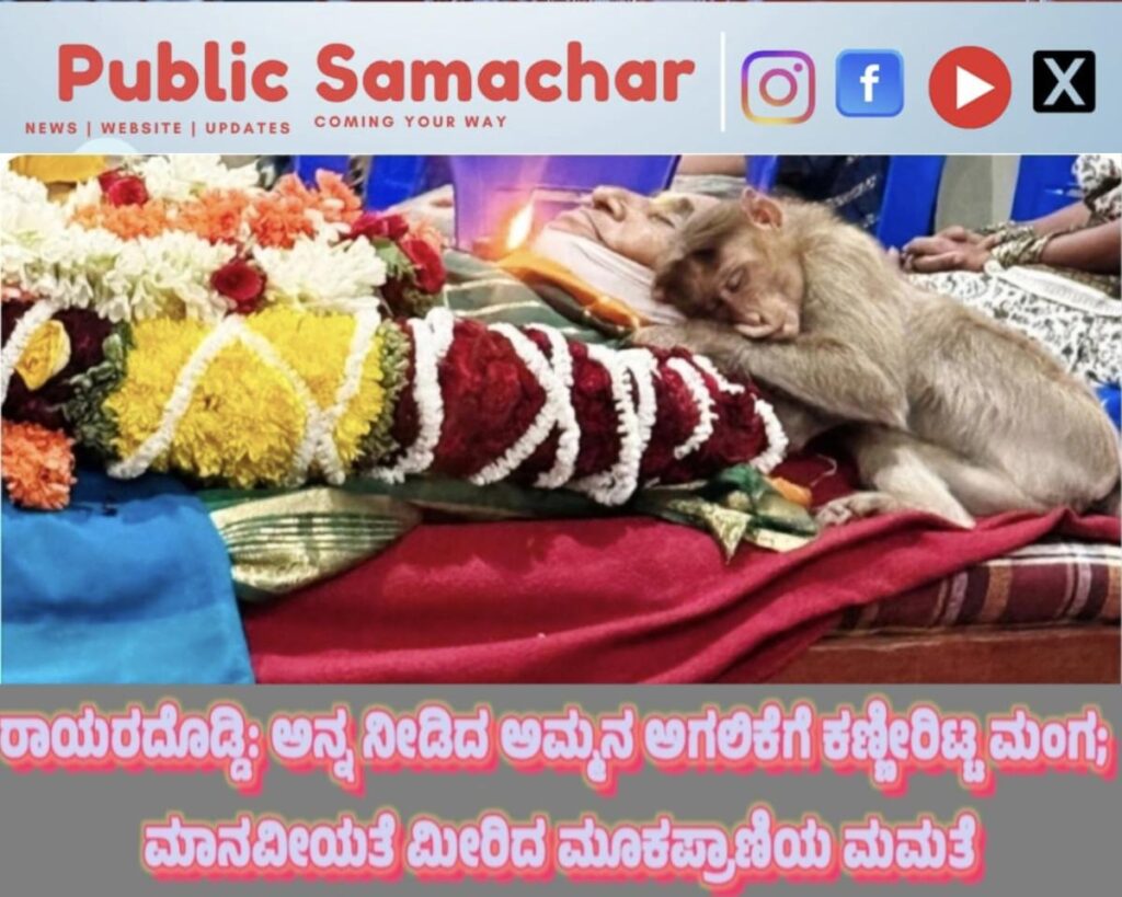 ರಾಯರದೊಡ್ಡಿ: ಅನ್ನ ನೀಡಿದ ಅಮ್ಮನ ಅಗಲಿಕೆಗೆ ಕಣ್ಣೀರಿಟ್ಟ ಮಂಗ; ಮಾನವೀಯತೆ ಮೀರಿದ ಮೂಕಪ್ರಾಣಿಯ ಮಮತೆ