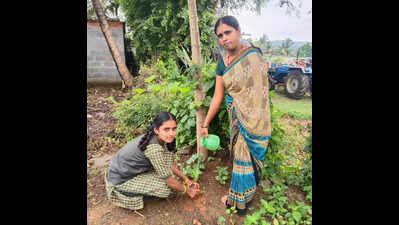 Pic: Priyanka Hurali, a student of Govt High School, Muttagi, plants a sapling with her mother Prema under the ‘Ek Ped Maa Ke Naam’ campaignHubballi: The education department has launched ‘Ek Ped Maa Ke Naam’ (One Tree in the Name of Mother 2.0) to encourage children to plant a tree in honour of their mothers and Mother Earth, promoting environmental awareness. Schoolchildren are planting saplings, nurturing them, and taking selfies with these saplings. Ina good response, a total of 274,397 saplings were planted at 20,355 schools in the state.Union minister for education Dharmendra Pradhan launched the programme on June 5. The campaign will run until Sept 30. The Union govt initiated this as climate change is a serious problem worldwide, and everyone’s cooperation is needed to solve it. It emphasised that everyone should play a role in protecting the environment.According to a source in the department, in Dakshina Kannada district, 44,805 saplings were planted in 1,488 schools, while in Chikkodi, 42,483 saplings were planted in 1,501 schools. In Udupi, 22,749 saplings were planted in 619 schools. In Dharwad district, 6,180 saplings were planted in more than 600 schools.Renuka Amalazari, assistant project coordinator of Rashtriya Madhyamik Shiksha Abhiyan, said that with the aim of creating awareness among students about the environment, instilling eco-friendly habits in them, and shaping them into responsible citizens, Eco Clubs are being established compulsorily in all govt-aided and unaided schools in the state under the ‘Mission LIFE’ scheme. Students are being prepared for environmental protection. Schools have been instructed to register for the campaign and actively participate.Amalazari mentioned that under the campaign, themed activities such as adopting healthy lifestyles, saying no to single-use plastic, and saving water and energy will be conducted.Mangala Pai, Eco Club nodal officer and science teacher at govt high school, Muttagi, said that in schools, 263 children planted 450 saplings. “Children are encouraged to participate in the campaign. This activity was given as a CCE project, and a large number of students participated. The method of uploading a photo on the relevant website and downloading the certificate was shown to the students live through Smart TV and projector. Students learned how to download the certificate and helped their friends. Not only the students but also their siblings at home participated in this activity. The certificate they received inspired them. All the students celebrated by taking a colour print of the certificate,” she said.