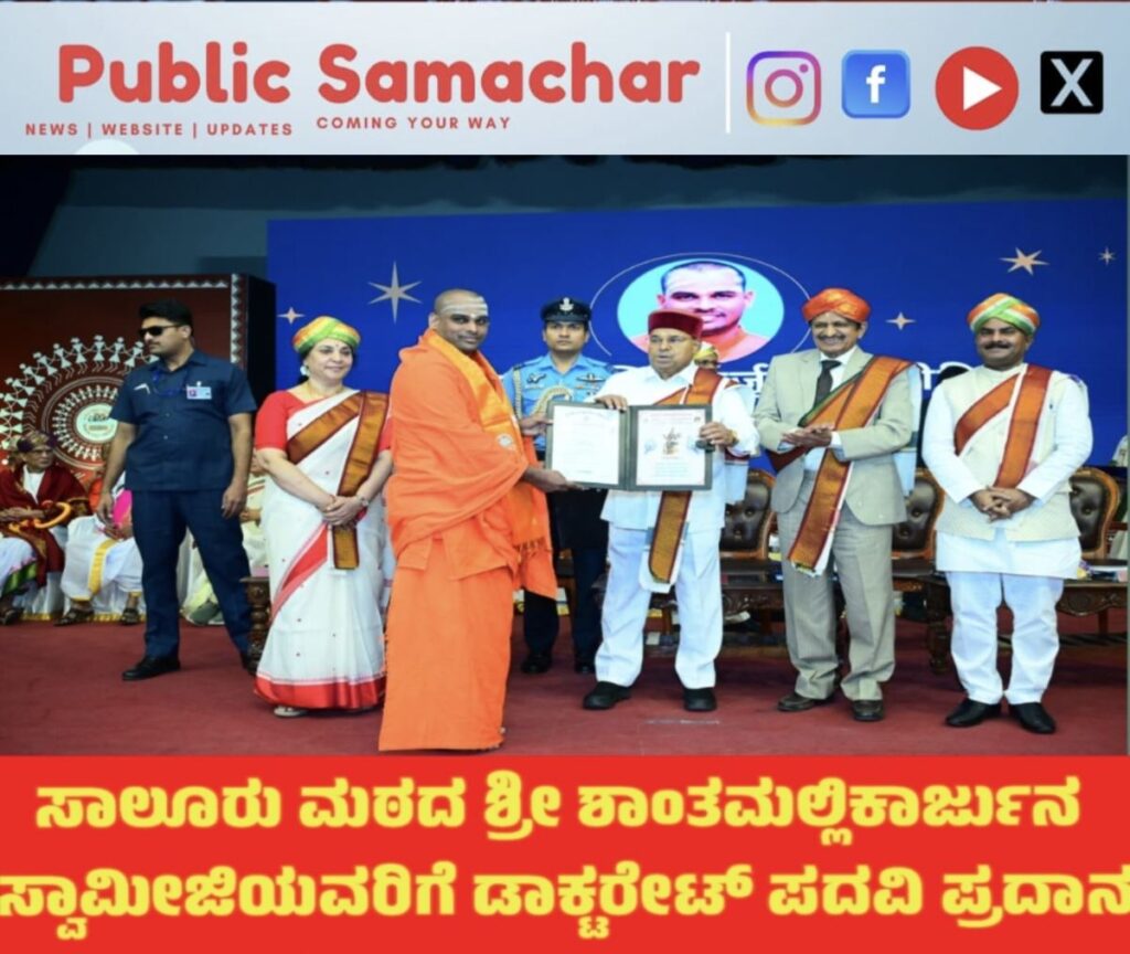 ಹನೂರು: ಮಲೆ ಮಹದೇಶ್ವರ ಬೆಟ್ಟದ ಸಾಲೂರು ಬೃಹನ್ಮಠದ ಪೀಠಾಧಿಪತಿಗಳಾದ ಶ್ರೀ ಶಾಂತಮಲ್ಲಿಕಾರ್ಜುನ ಸ್ವಾಮೀಜಿಯವರು ವಿದ್ಯಾವಾರಾಧಿ (ಪಿಹೆಚ್.ಡಿ) ಪದವಿಯನ್ನು ಮುಡಿಗೇರಿಸಿಕೊಂಡಿದ್ದಾರೆ. ಮಂಗಳವಾರ ಬೆಂಗಳೂರಿನ ಜ್ಞಾನಜ್ಯೋತಿ ಸಭಾಂಗಣದಲ್ಲಿ ಆಯೋಜಿಸಲಾಗಿದ್ದ ಕರ್ನಾಟಕ ಸಂಸ್ಕೃತ ವಿಶ್ವವಿದ್ಯಾಲಯದ 12 ಮತ್ತು 13ನೇ ಘಟಿಕೋತ್ಸವ ಸಮಾರಂಭದಲ್ಲಿ ಸ್ವಾಮೀಜಿಯವರಿಗೆ ಈ ಉನ್ನತ ಪದವಿಯನ್ನು ಪ್ರದಾನ ಮಾಡಲಾಯಿತು.