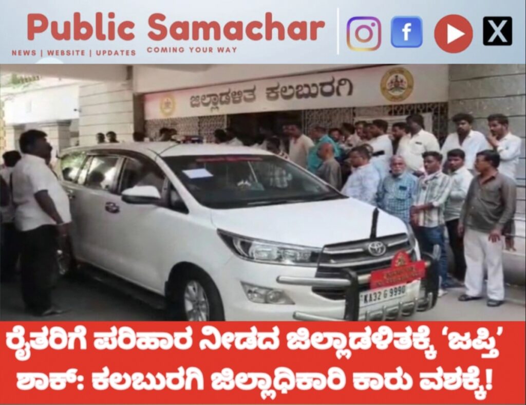 ರೈತರಿಗೆ ಪರಿಹಾರ ನೀಡದ ಜಿಲ್ಲಾಡಳಿತಕ್ಕೆ ‘ಜಪ್ತಿ’ ಶಾಕ್: ಕಲಬುರಗಿ ಜಿಲ್ಲಾಧಿಕಾರಿ ಕಾರು ವಶಕ್ಕೆ!
