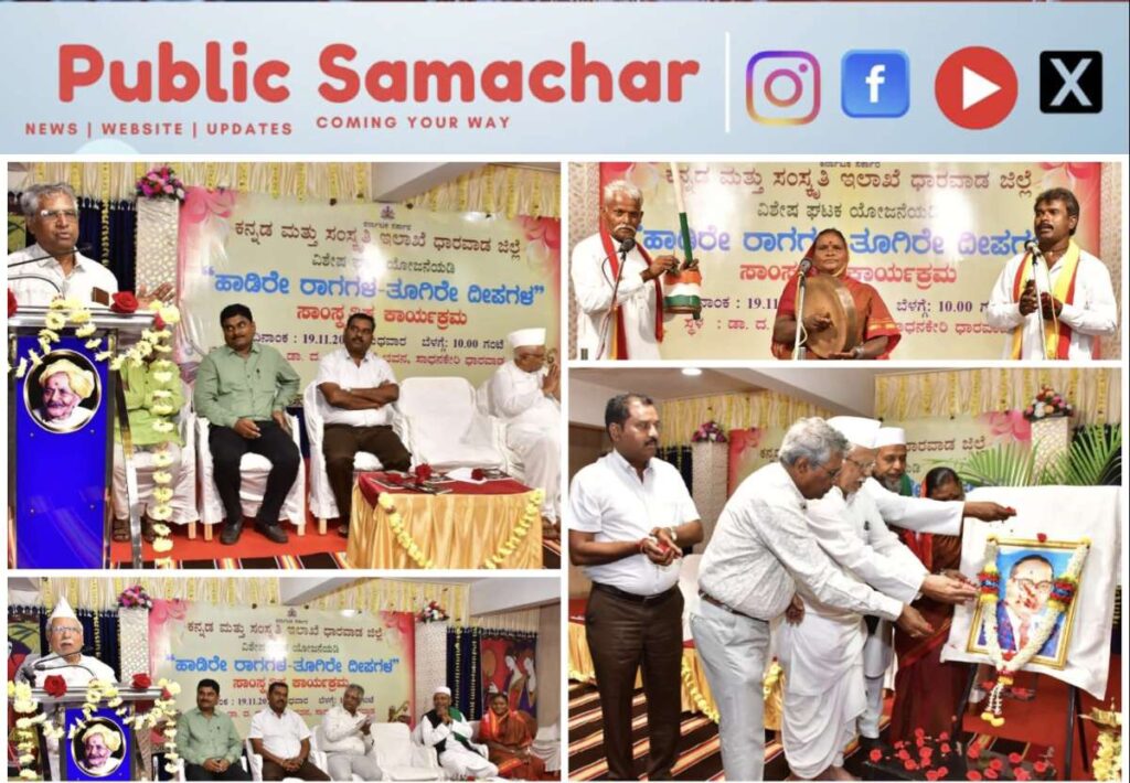 ಧಾರವಾಡ ನ.19: ಗ್ರಾಮೀಣ ಭಾಗದ ತಳಸಮುದಾಯದ ಪರಿಶಿಷ್ಟ ಜಾತಿಯ ಕಲಾವಿದರನ್ನು ಪ್ರೋತ್ಸಾಹಿಸುವ ಉದ್ದೇಶದಿಂದ ಸರ್ಕಾರ ಜಾರಿಗೆ ತಂದಿರುವ ವಿಶೇಷ ಘಟಕ ಯೋಜನೆ ಅತ್ಯಂತ ಔಚಿತ್ಯಪೂರ್ಣವಾಗಿದೆ ಎಂದು ಕರ್ನಾಟಕ ವಿದ್ಯಾವರ್ಧಕ ಸಂಘದ ಅಧ್ಯಕ್ಷ ಚಂದ್ರಕಾಂತ ಬೆಲ್ಲದ ಹೇಳಿದರು. ಅವರು ಧಾರವಾಡದ ಡಾ. ದ.ರಾ. ಬೇಂದ್ರೆ ಭವನದಲ್ಲಿ ಕನ್ನಡ ಮತ್ತು ಸಂಸ್ಕೃತಿ ಇಲಾಖೆಯ ವತಿಯಿಂದ ಮಂಗಳವಾರ ಏರ್ಪಡಿಸಿದ್ದ ‘ಹಾಡಿರೇ ರಾಗಗಳ–ತೂಗಿರೇ ದೀಪಗಳ’ ಕಾರ್ಯಕ್ರಮವನ್ನು ಉದ್ಘಾಟಿಸಿ ಮಾತನಾಡಿದರು. ಇಂತಹ ಯೋಜನೆಗಳಿಂದ ಗ್ರಾಮೀಣ ಹಾಗೂ ತಳ ಸಮುದಾಯದ ಜಾನಪದ ಕಲಾವಿದರಿಗೆ ಹೆಚ್ಚಿನ ವೇದಿಕೆಗಳು ಲಭಿಸುತ್ತವೆ ಎಂದು ಅವರು ಅಭಿಪ್ರಾಯಪಟ್ಟರು.